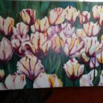 Kwiaty – „Motywy roślinne, jak i zatopione w świetle słonecznym pejzaże są moimi ulubionymi tematami. Zręcznie łączy w harmonię barw i kształtów impresjonistyczne środki wyrazu z realistycznymi elementami wyczarowując romantyczny świat pięknej egzystencji. Moje obrazy nie są żadną kopią czy fotografią przyrody. Są jej subiektywną modyfikacją, wytworem wyobraźni inspirowanej naturą. Grą harmonijnie dopasowujących się wzajemnie jasnych, świetlistych barw i kształtów wzbudza podziw i afirmację dla piękna oglądanej jego oczami przyrody. To sztuka nasycona zmysłowością i radością życia”