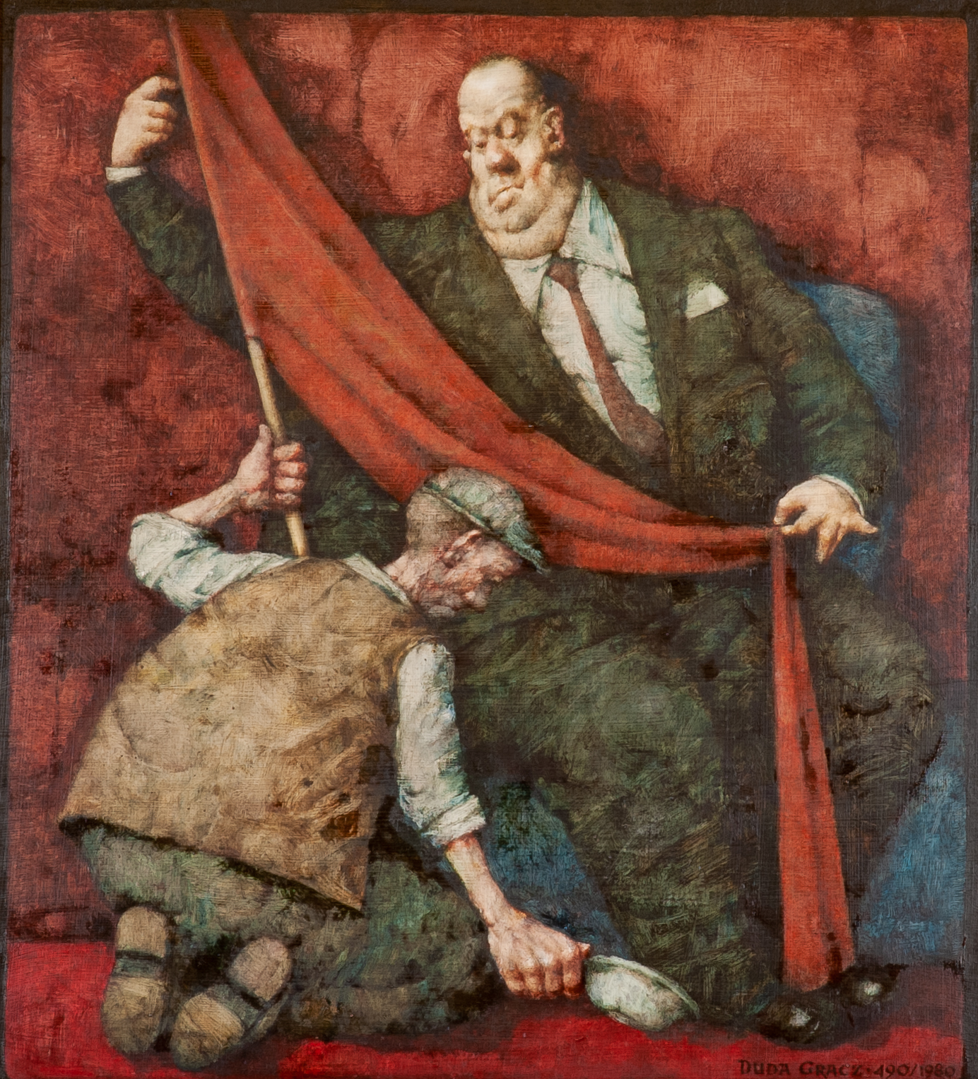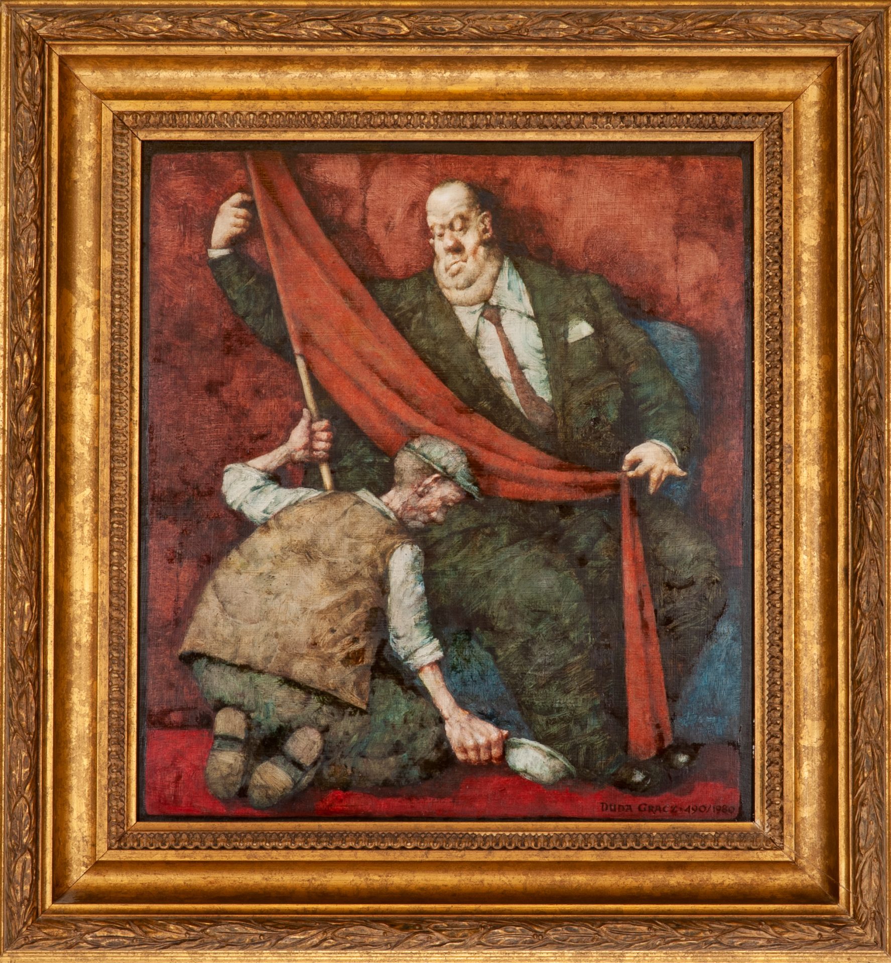 Malarstwo Jerzego Dudy- Gracza (1941-2004), charakteryzuje się niezależnością i tym żę wychodzi poza ramy kategoryzacji. Tematyka jego obrazów to industrialne pejzaże, portrety zwyczajnych ludzi przyprawione sporą dozą humoru i groteski. Jego obrazy określane są jako rubaszne, kpiące i prześmiewające otaczającą malarza rzeczywistość w szczególności tą PRL-owską, którą cechowały absurdy i anormalność. Krytyka tej rzeczywistości jest tutaj świetnie ukazana, obraz cechują również mocne, kontrastowe zestawienia intensywnych barw.