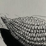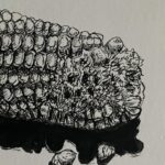 Rysunek piórkiem. Czarny tusz na papierze. Praca z cyklu „Przedmioty w ostrym świetle). Praca sygnowana podpisem i stemplem