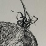 Rysunek piórkiem. Czarny tusz na papierze. Praca z cyklu „Przedmioty w ostrym świetle” praca sygnowana podpisem i stemplem