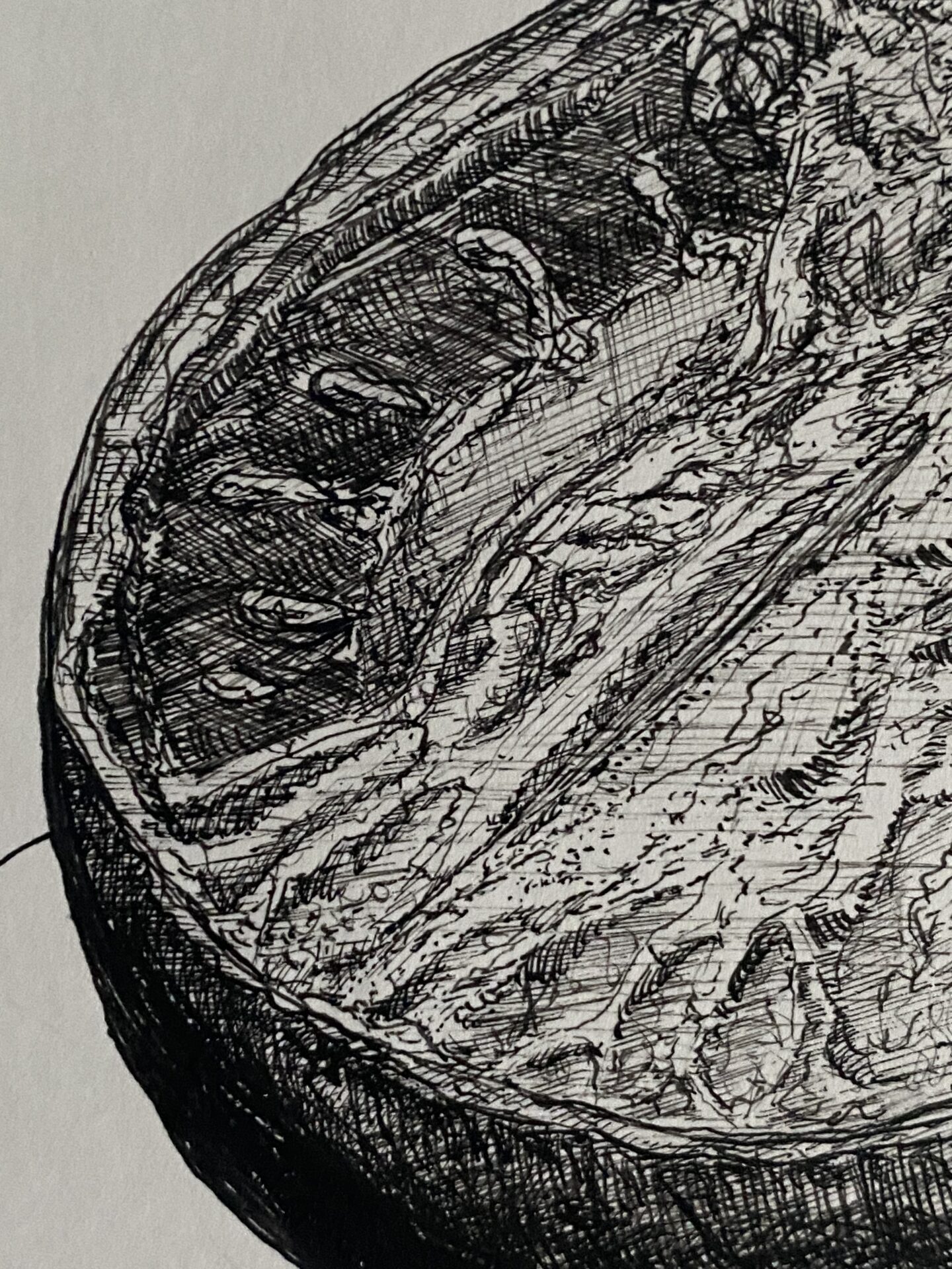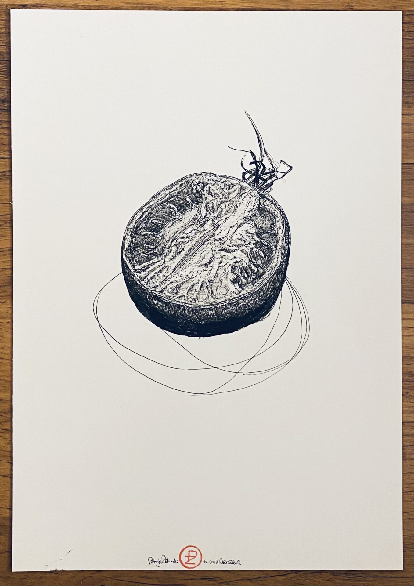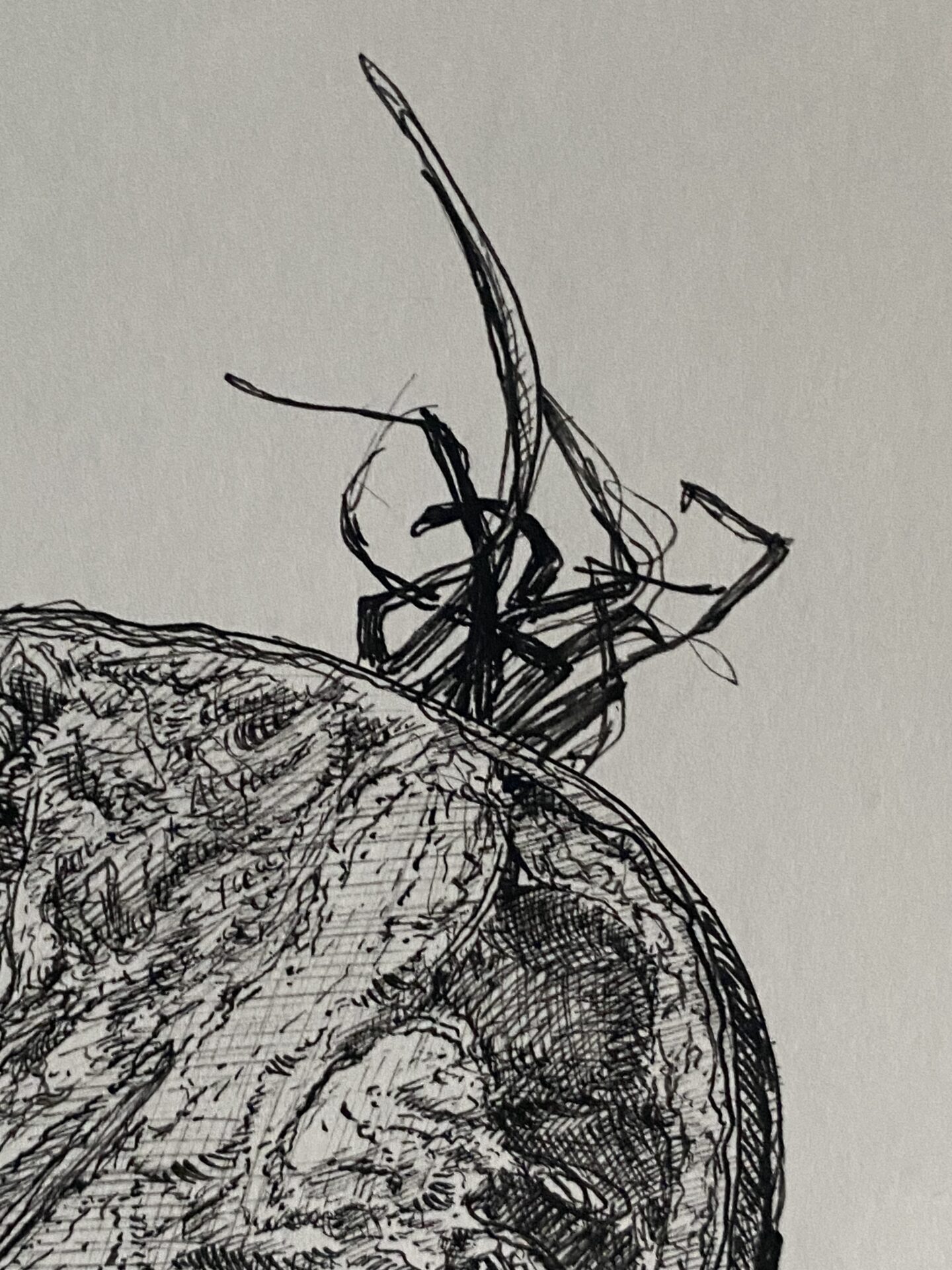 Rysunek piórkiem. Czarny tusz na papierze. Praca z cyklu „Przedmioty w ostrym świetle” praca sygnowana podpisem i stemplem