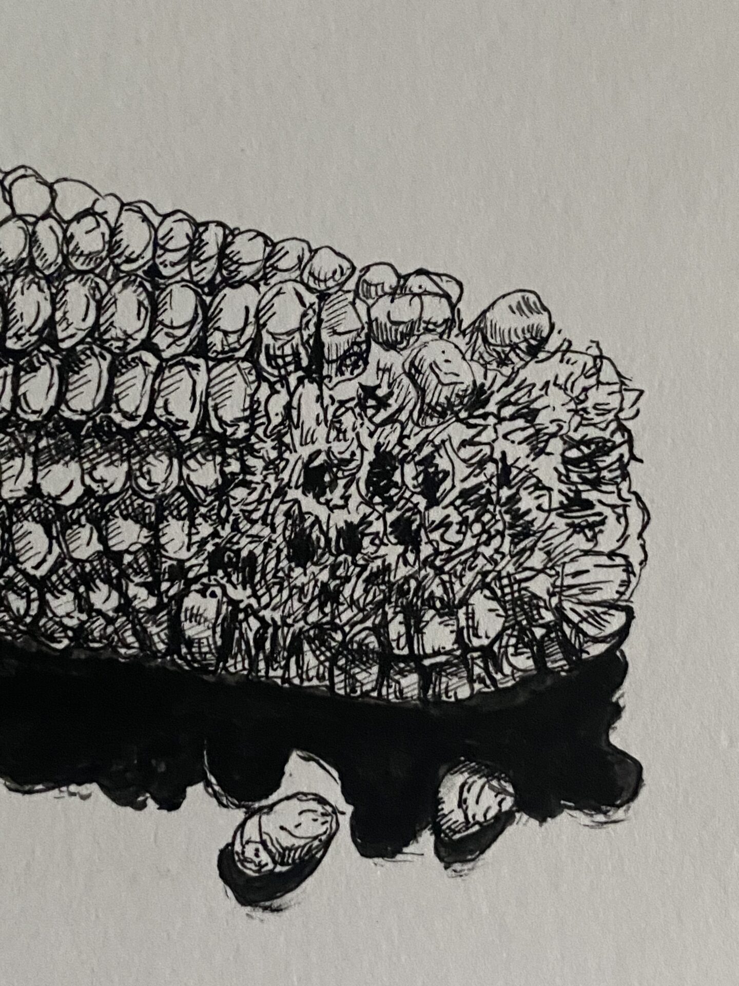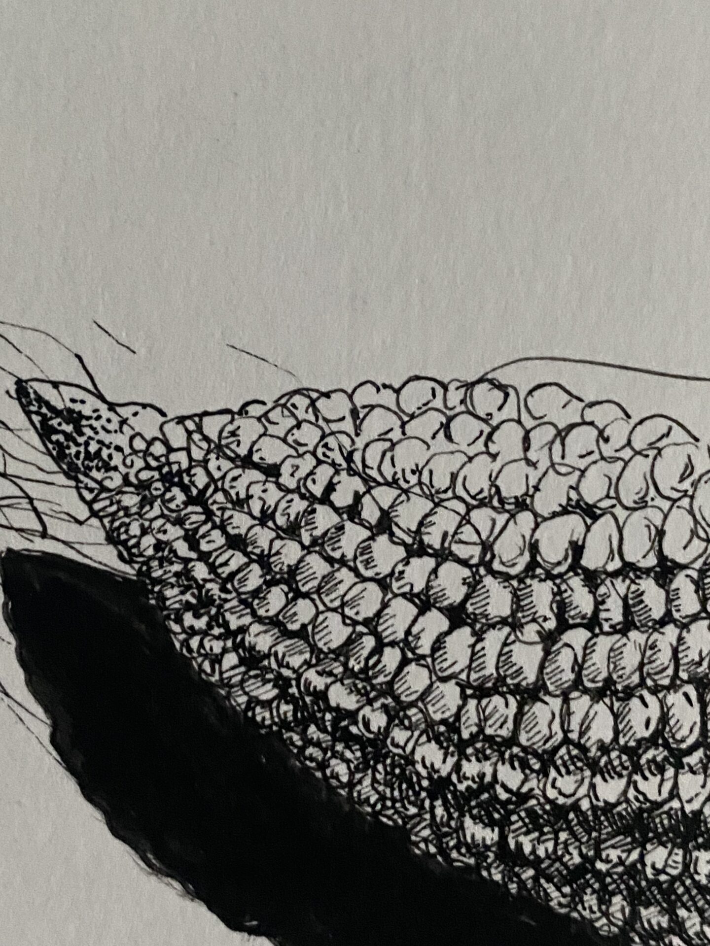 Rysunek piórkiem. Czarny tusz na papierze. Praca z cyklu „Przedmioty w ostrym świetle). Praca sygnowana podpisem i stemplem