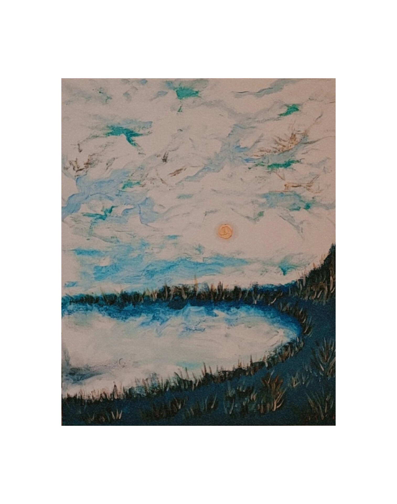 Obraz pt. Poranek malowany farbami olejnymi na płótnie o wymiarach 40×50. Nie posiada ramy.