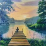 Obraz olejny na płótnie mojego autorstwa. Inspirowany wschodem słońca o poranku podczas pobytu na rybach. Wykonany 2024 roku.Format 70x50cm . Boki zamalowane. Sygnowany na awersie i rewersie.