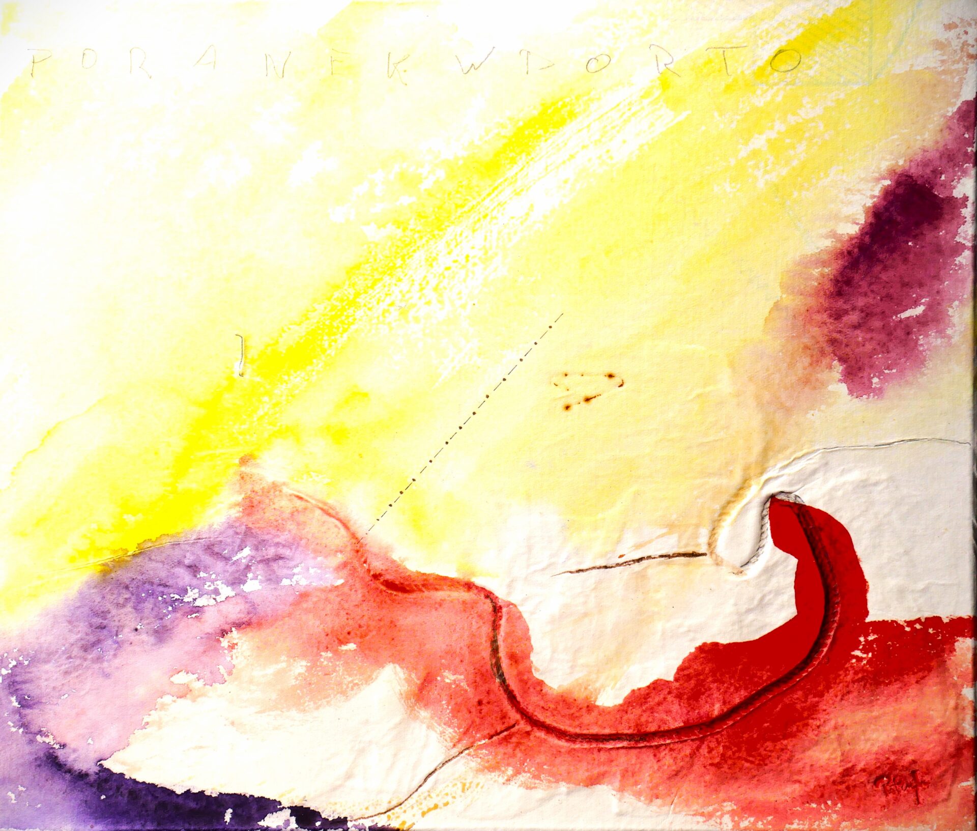 Akwarela namalowana na uprzednio przygotowanym podłożu. Na rysunku z roku 1978 umieściłem masę papierową aby odcisnąć w niej różne formy gotowe. Następnie nakleiłem warstwę papieru i na niej użyłem ołówka i farb akwarelowych.