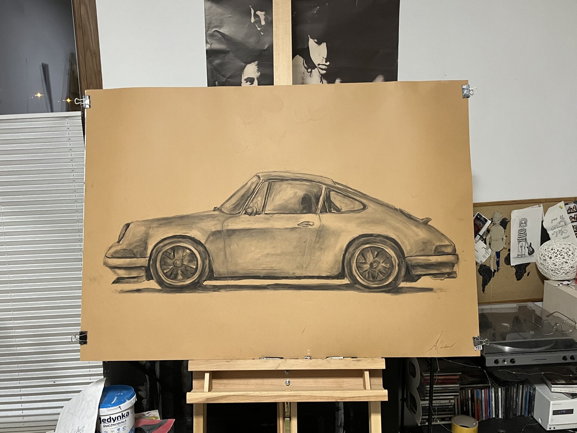 Rysunek Porsche 911 III generacji (964). Podczas kryzysu rynku sportowych samochodów w latach 90 model ten pomógł utrzymać się marce dzięki popularności i przychylnym opiniom prasy. Od początku zachwycał swoją klasyczną linią.