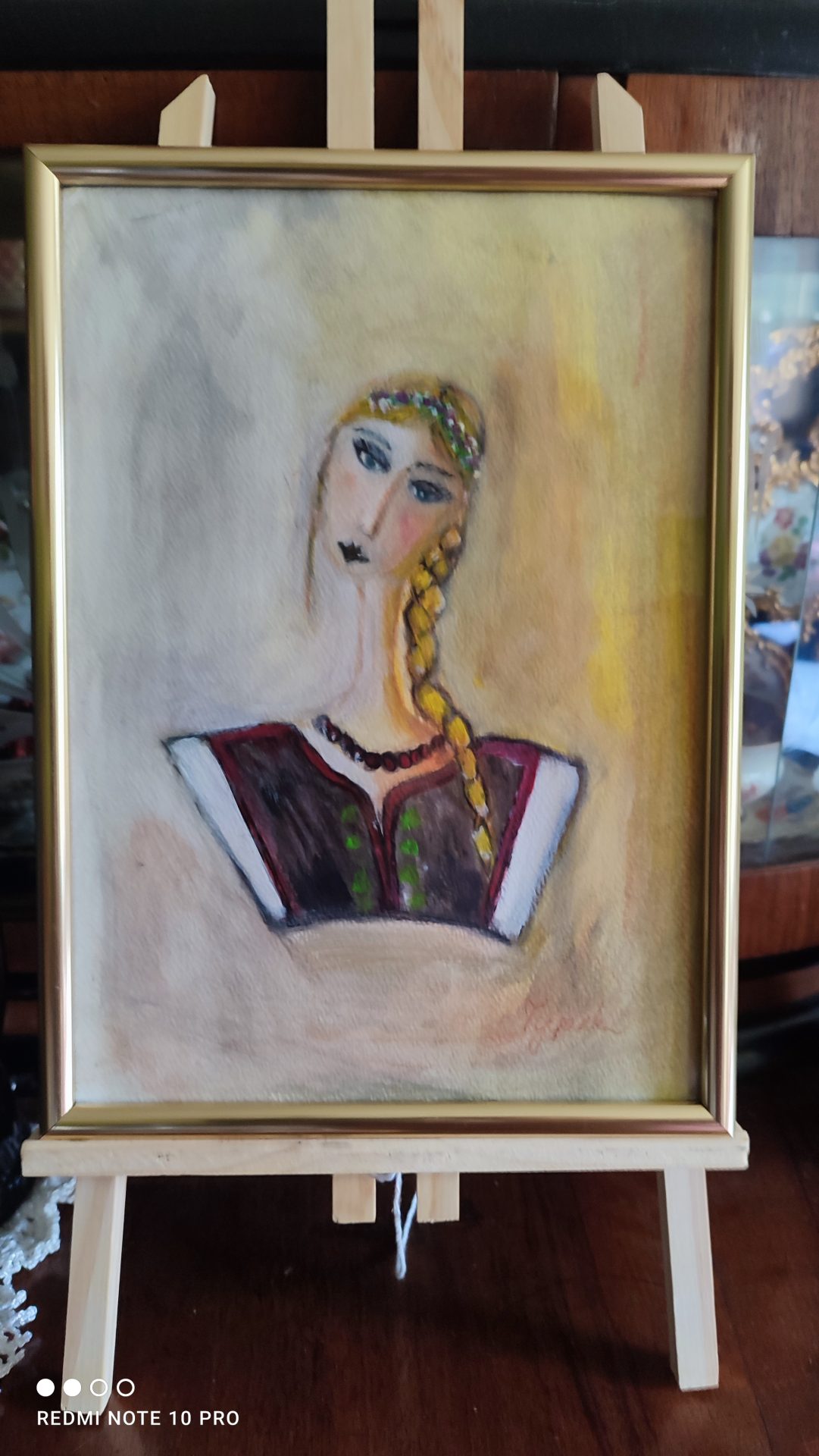 Portret Góralka format A4 technika akryl na papierze brystol sygnowany, ramka zaszklona w komplecie