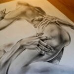 Rysunek wykonałam węglem oraz kredą, na formacie a3. Jest inspirowany rzeźba pt. „Porwanie Prozerpiny”. Dzieło tworzone kilka dni, wieloma godzinami. Zainspirowały mnie w szczególności wszystkie wgłębienia w ciele i skórze, wykonane przez palce, elementy ukazujące krągłość ciała i cienie oddające wyrazistość. A wszystko to sądzę, że wiernie oddane jest w pracy i obrazuje sama esencję tego widoku.