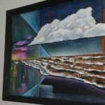 Przedmiotem sprzedaży jest obraz abstrakcyjny malowany farbami olejnymi ,pędzlem i szpachelką(wyraziste i grube faktury) na podobraziu płóciennym lnianym.Obraz jest w ramie drewnianej (kolor ciemna zieleń-khaki)