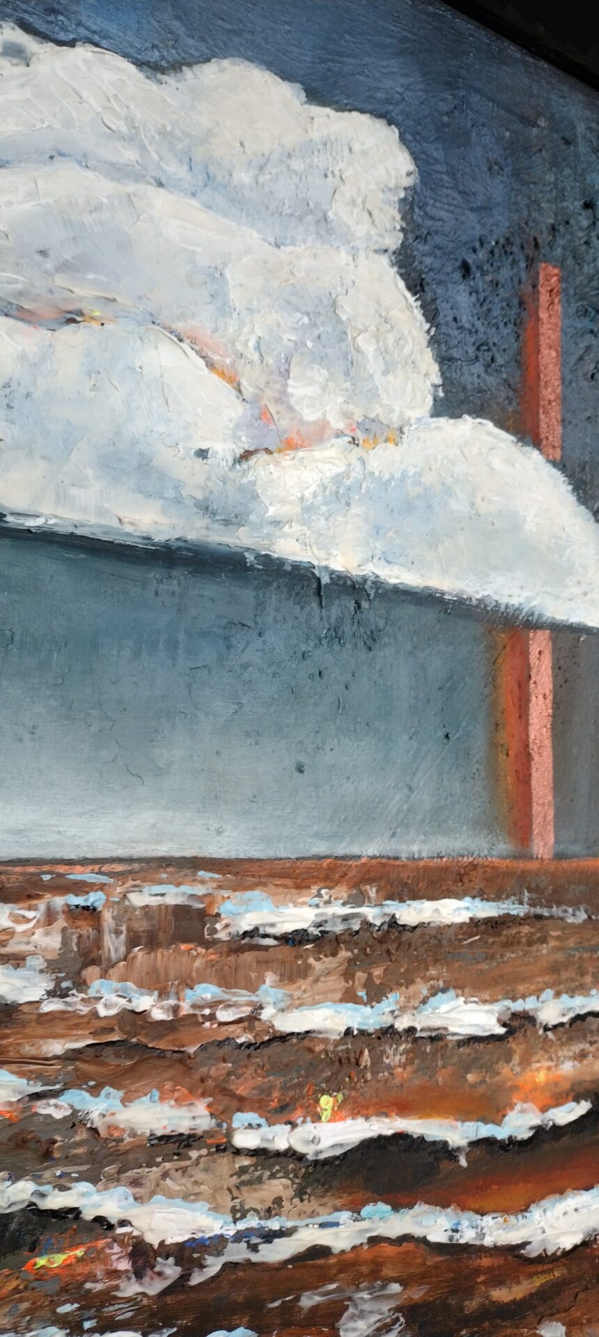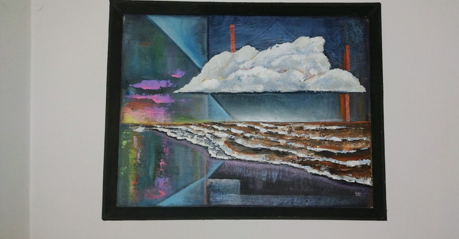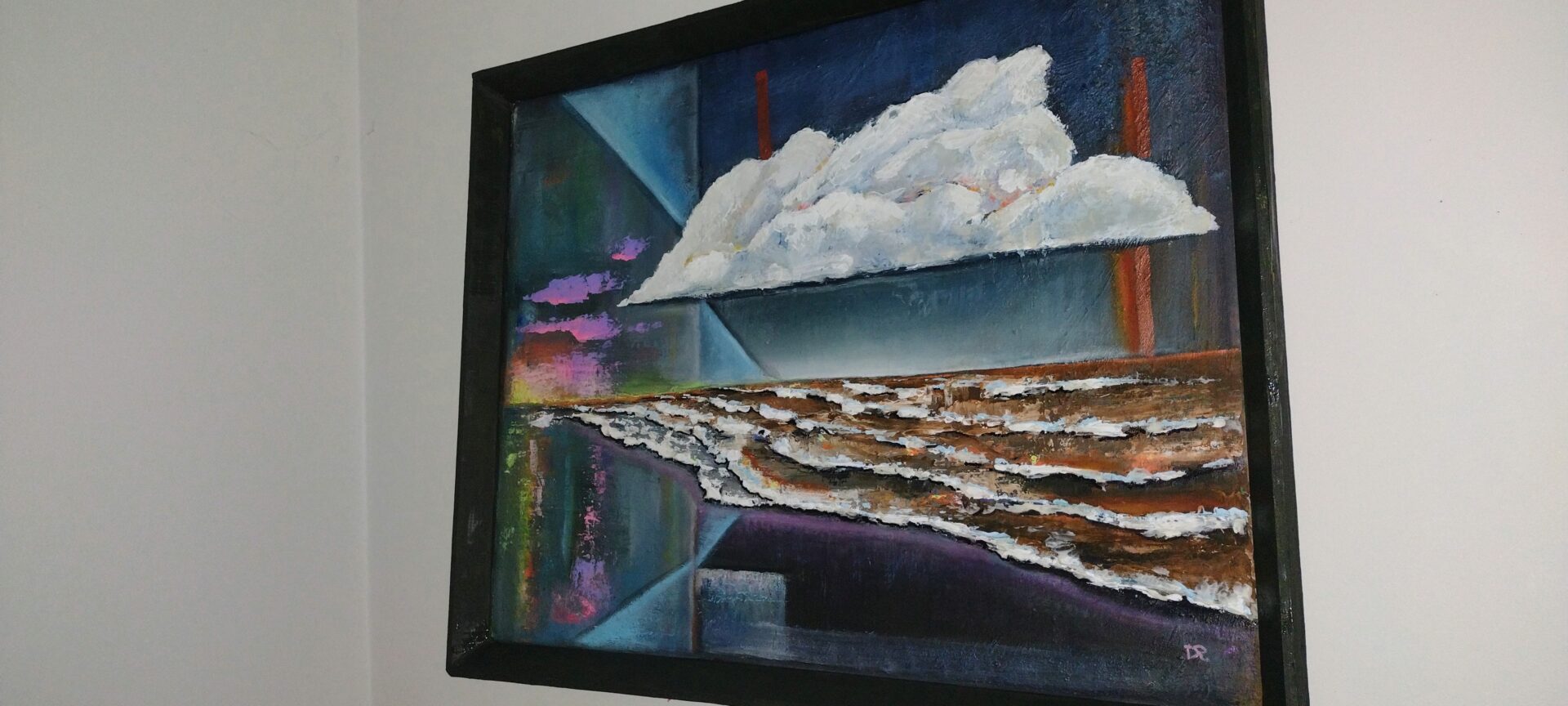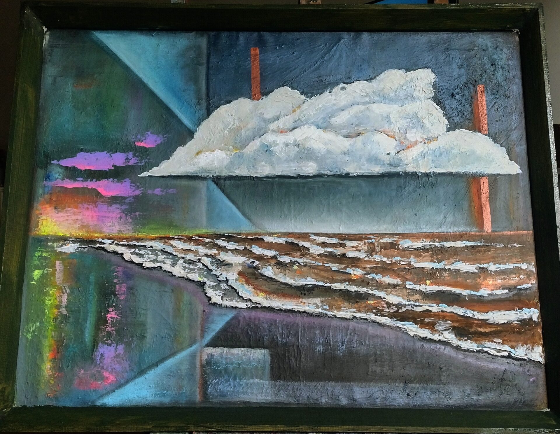 Przedmiotem sprzedaży jest obraz abstrakcyjny malowany farbami olejnymi ,pędzlem i szpachelką(wyraziste i grube faktury) na podobraziu płóciennym lnianym.Obraz jest w ramie drewnianej (kolor ciemna zieleń-khaki)