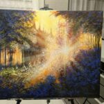 Obraz mojego autorstwa, namalowany profesjonalnymi farbami akrylowymi na podobraziu malarskim pokrytym bawełnianym płótnem (płótno naciągnięte na drewnianą blejtramę). Pracę wykonano przy pomocy pędzla i szpachli. Wykończono werniksem z połyskiem. Wymiary: około 49,5 x 59,5 cm. Boki obrazu zostały zamalowane zgodnie z kolorystyką całości. Podpis autora znajduje się na awersie i rewersie.