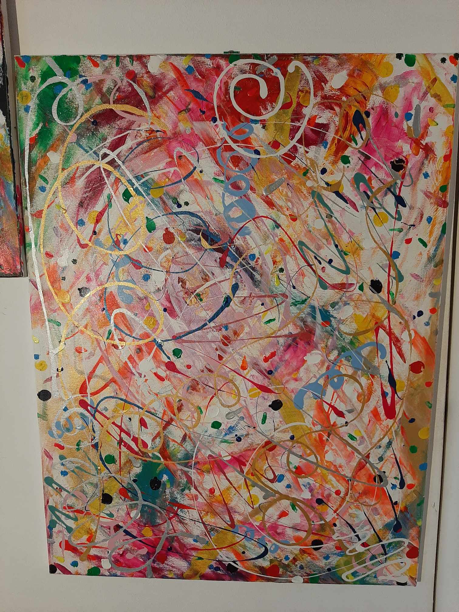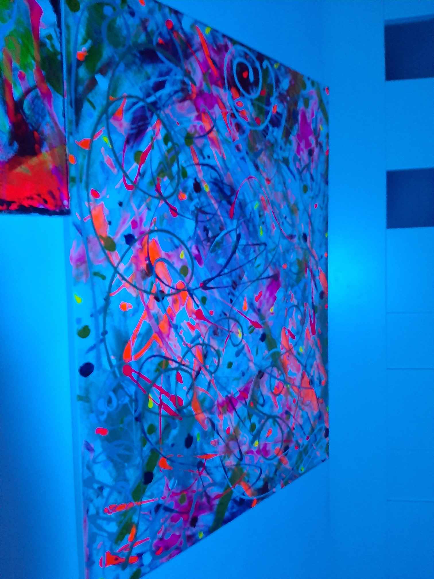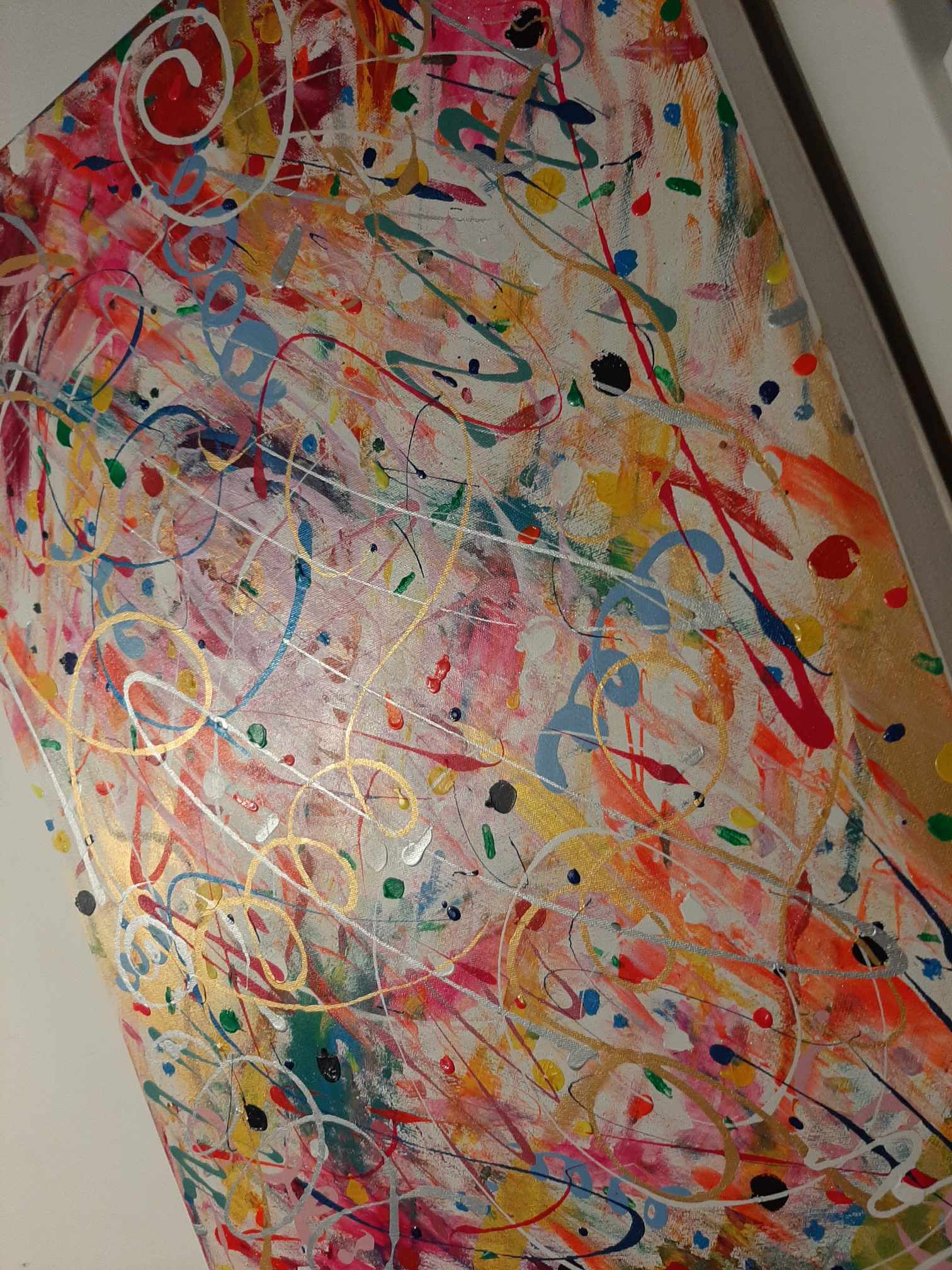 Moje prace będą wyróżniać się charakterystycznymi, mocnymi kolorami, z brokatowymi i metalicznymi akcentami.Obrazy są zabezpieczane specjalnym sprejem, który nadaje im połysk i długowieczność.