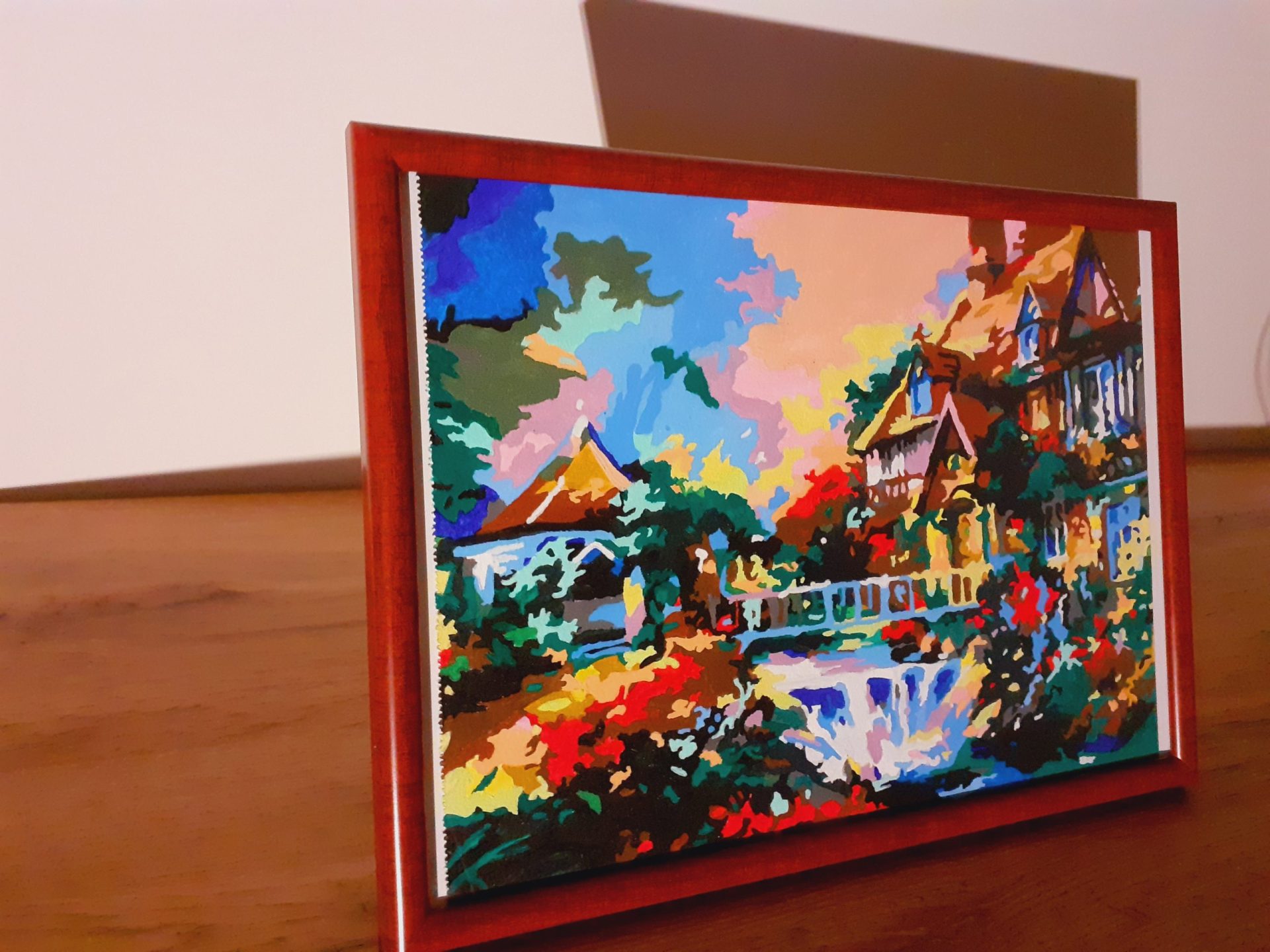 Obraz wykonany ręcznie za pomocą farb akrylowych na płótnie o wymiarach 20cm x 29cm (Z ramką 23cm x 32 cm)