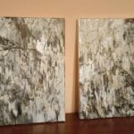 Akryl na płótnie, obraz abstrakcyjny, inspirowany naturą. Utrzymany w kolorach szarości, beżu posiada także mieniące się drobiny wchodzące w interakcję ze światłem zarówno naturalnym jak i sztucznym. Chętnie udostępnię filmiki z zachowaniem światła i odbić na obrazie. Dostępne są dwa obrazy w tej tematyce, tworzące spójną kompozycję.