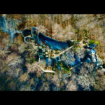 Ruiny zamku Bolczów widziane z lotu ptaka, same wyglądają jak ptak.