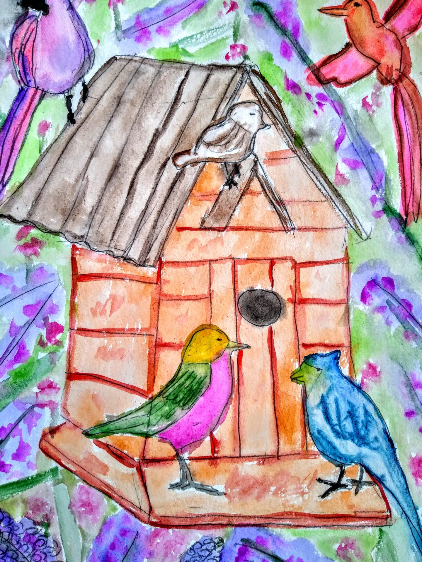 Jest to moja aranżacja budki dla ptaków. Doskonała np. do kuchni.