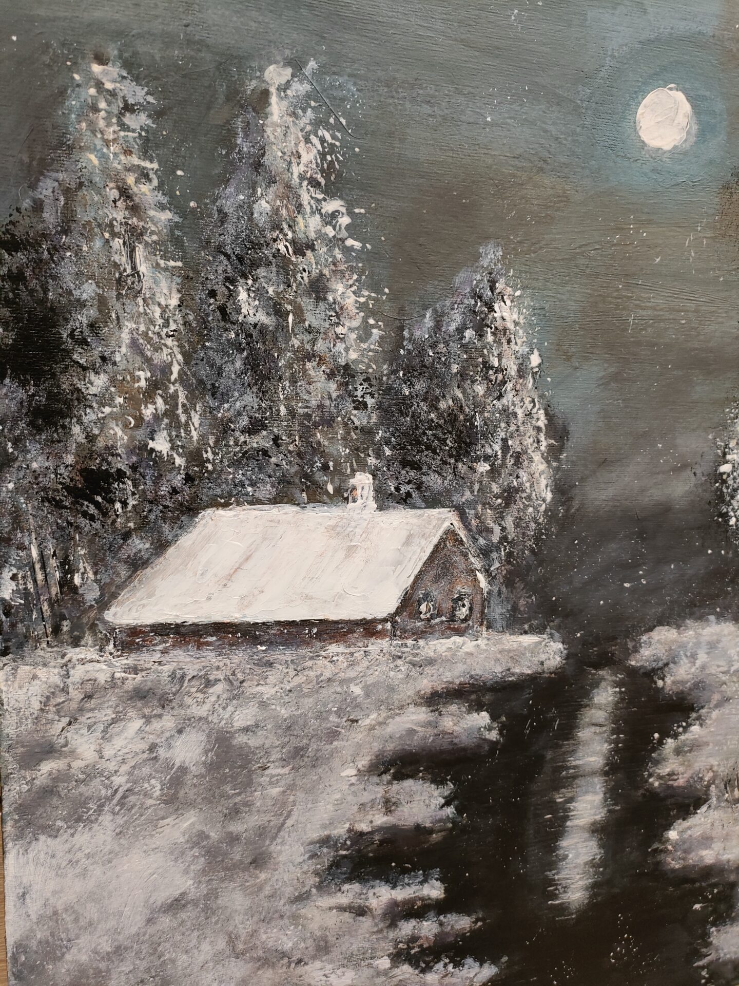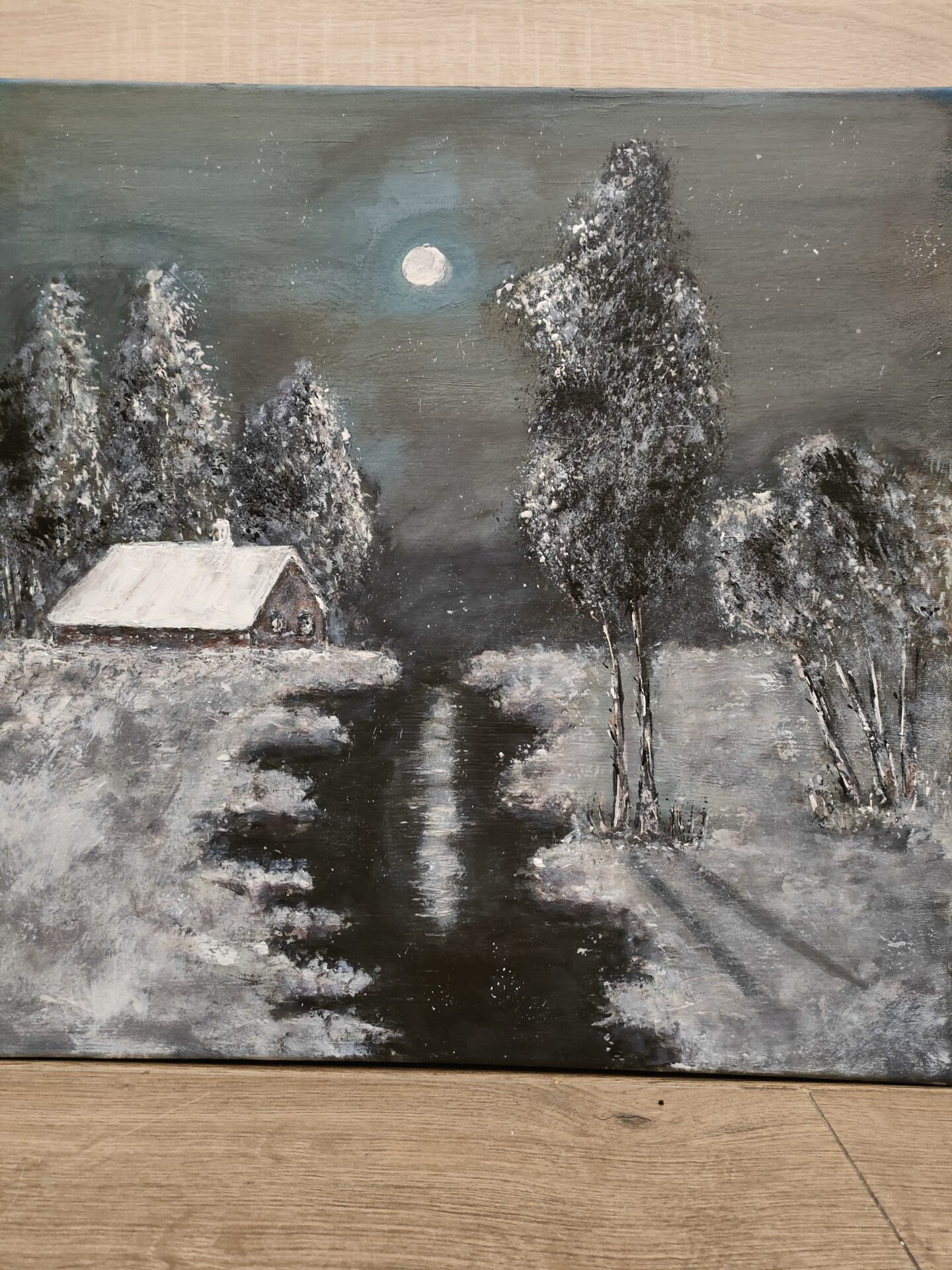Obraz namalowany farbami akrylowymi,zabezpieczony podwójną warstwą lakieru.Obraz na podobraziu malarskim.