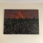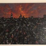 Obraz malowany ręcznie szpachelkami, farbami akrylowymi na bawełnianym płótnie dobrej jakości. Obraz przedstawia wizję miasta oraz świecących od niego świateł. Z daleka możnaby żec, że obraz jest pełen szczegółów :). Wykonany w 2024 roku, pomalowany ochronnym werniksem. Wykonany przezemnie, amatorską artystkę w napadzie weny. Zapraszam do kontaktu <3
