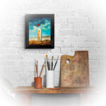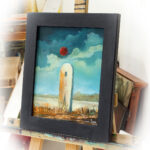 Obraz na płycie oklejonej płótnem bawełnianym 290gr/m2 , całość oprawiona w drewnianą ramkę 39×29 cmFarby olejne Renesans wymiar samej pracy 24×30 cm Praca sygnowana z tyłu i przodu .Certyfikat autentyczności