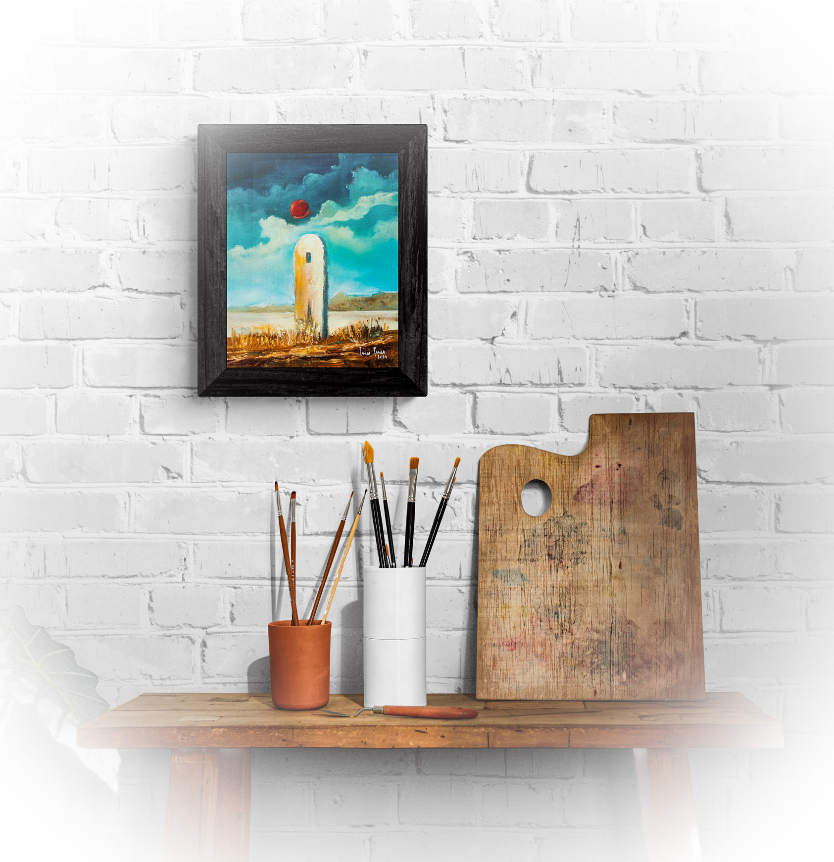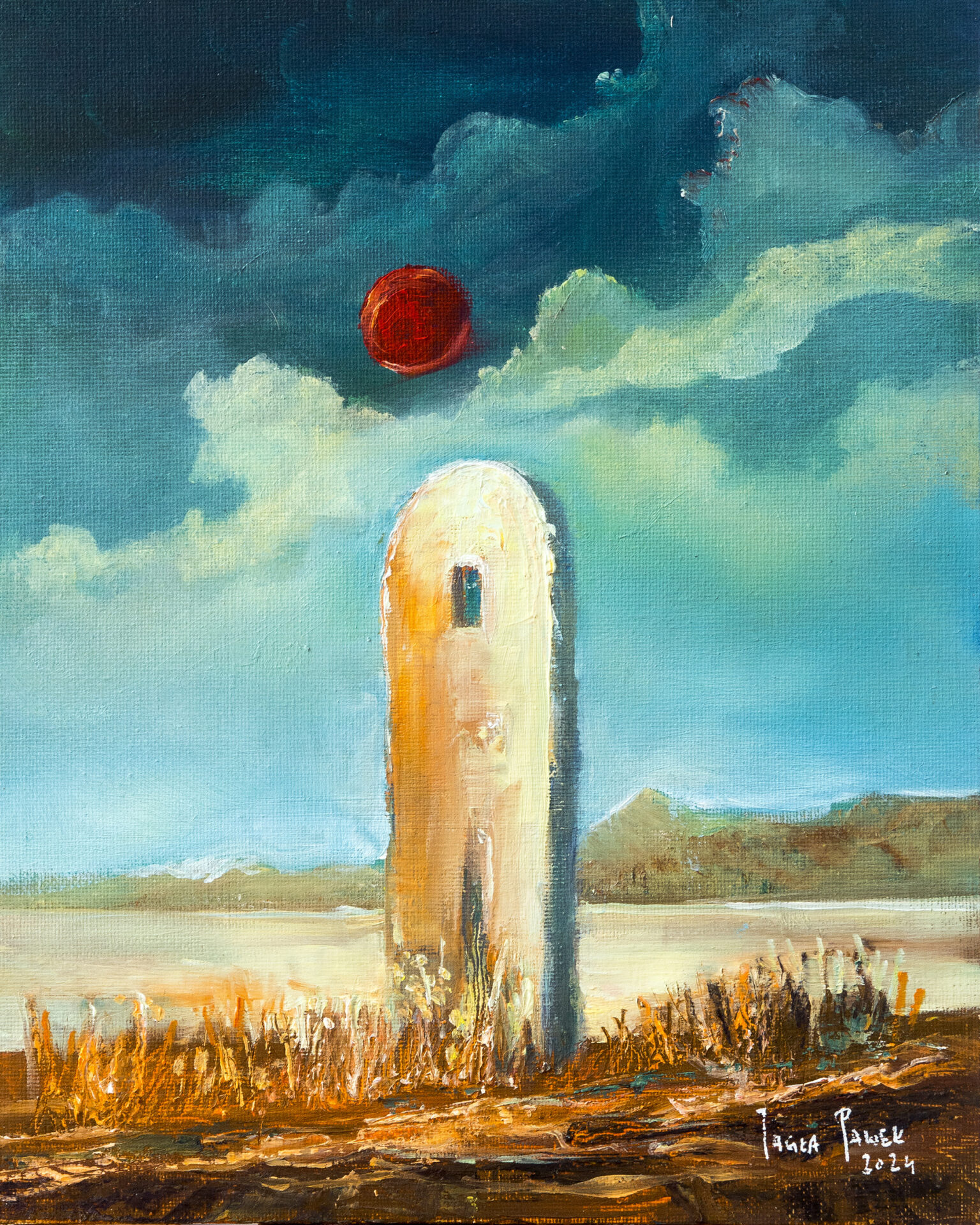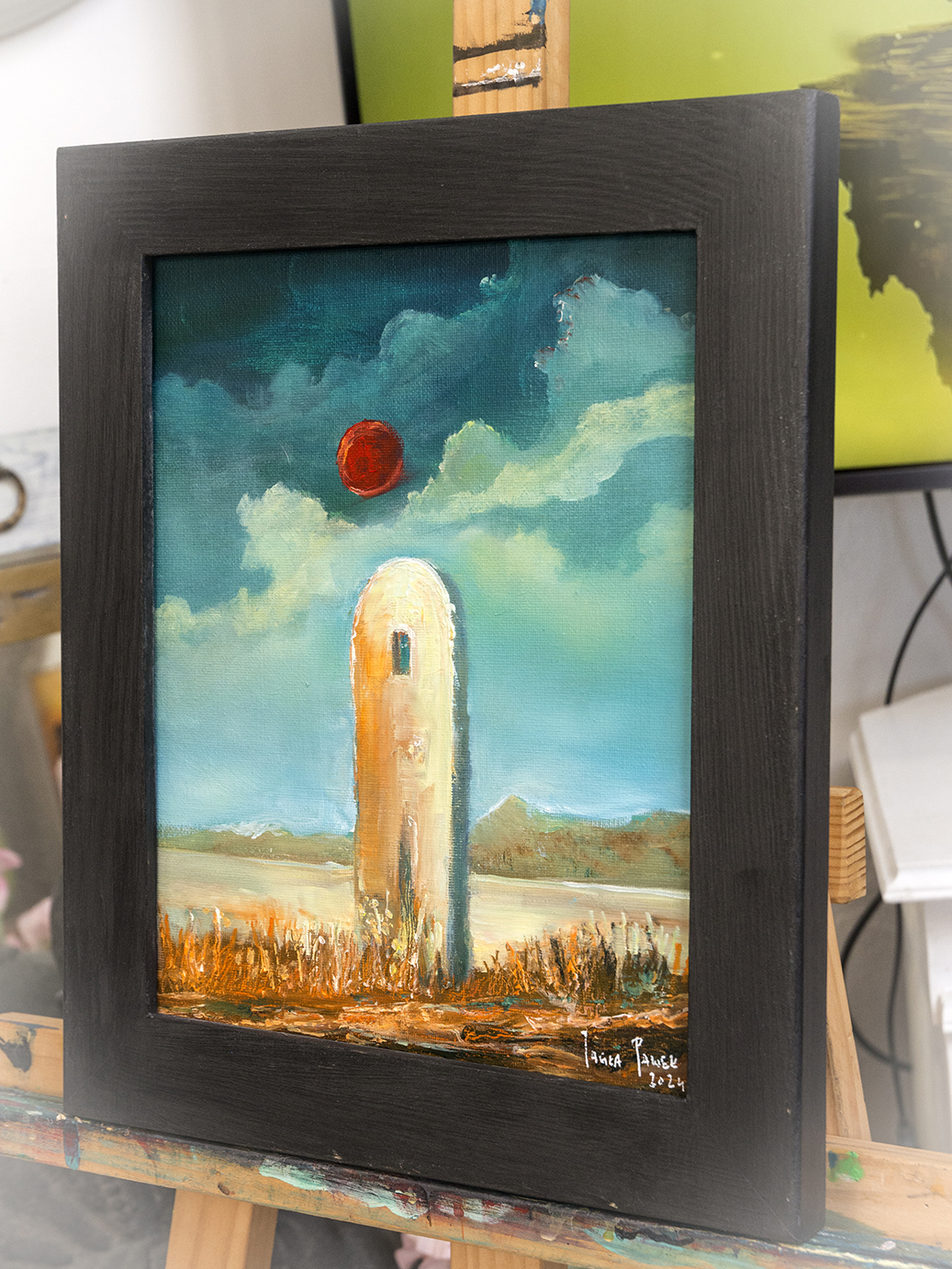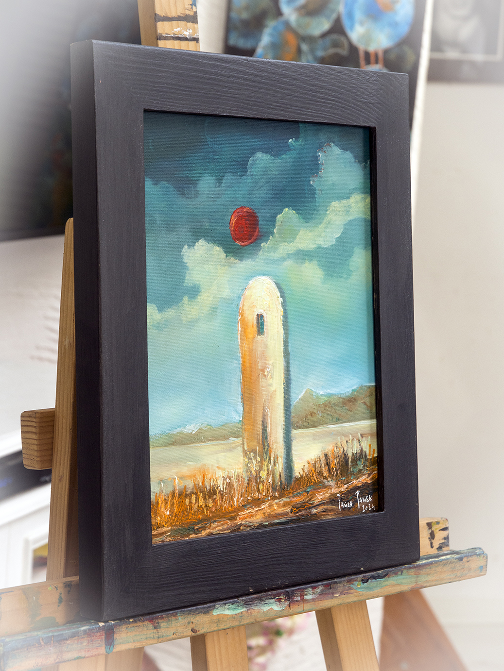 Obraz na płycie oklejonej płótnem bawełnianym 290gr/m2 , całość oprawiona w drewnianą ramkę 39×29 cmFarby olejne Renesans wymiar samej pracy 24×30 cm Praca sygnowana z tyłu i przodu .Certyfikat autentyczności