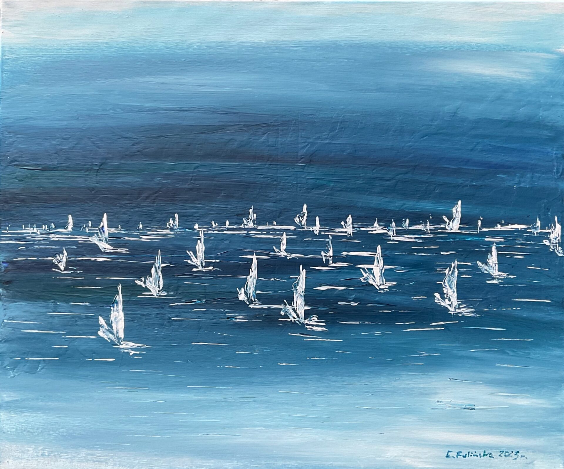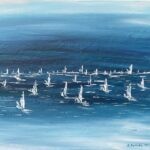 Obraz przedstawia impresjonistyczny zachwyt nad pięknem rywalizacji regat morskich nad Bałtykiem.