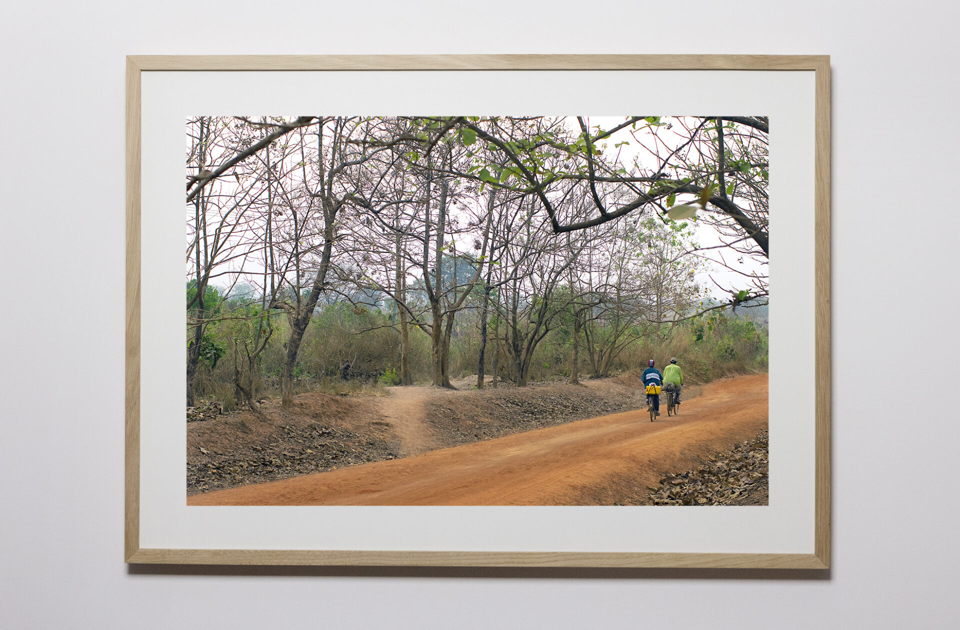 Wydruk na Hahnemuhle Photo Rag Pearl (60 x 89,6 cm),podklejony na 5 mm PVC, oprawiony w dębową ramę (naturalny dąb 1,5 x 3 cm, światło ramy 70 x 99,6 cm), z passe-partout (bezkwasowe, 1,4 mm), szkłem.