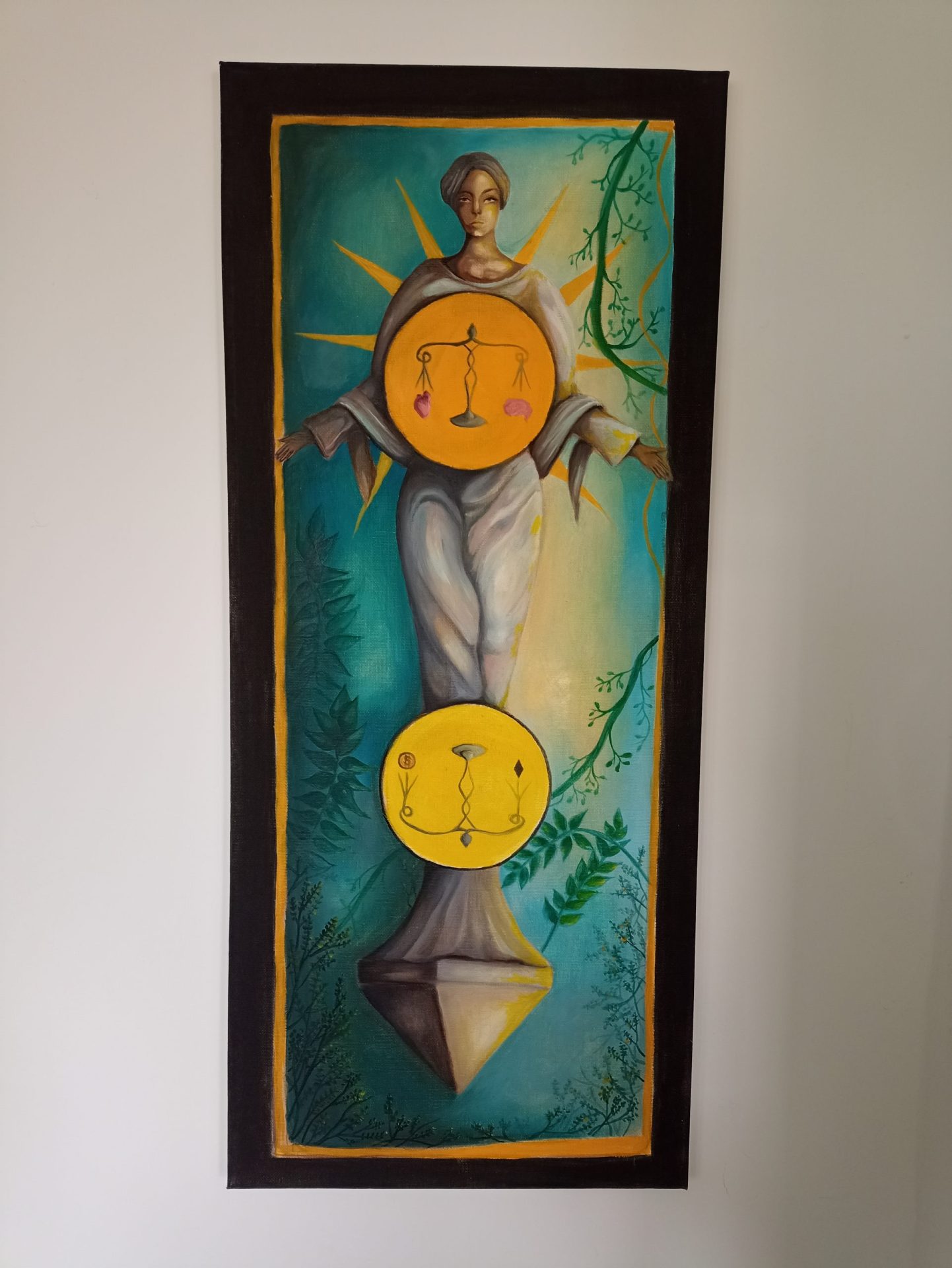 Obraz przedstawiający Boginię o wielu imieninach, symbol wolności, podążania za swoją intuicją, wierności sobie, ale na tym obrazie ukazuje jak wszystko ulega zmianie. Obraz jest naładowany energią, która budzi w odbiorcy skryta chęć do rozejrzenia się za czymś, co jest dla niego w głębi ważne. Namalowany został farbami olejnymi