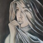 Obraz wykonany został profesjonalnymi grafitami, węglem oraz pastelami firmy Koh-i-noor na papierze fakturowanym renomowanej francuskiej firmy Canson. Powstała z okazji wystawy tematycznej pt. „Między czernią a bielą”. Praca oprawiona jest w gustowne, eleganckie passe-partout o wymiarach 36 cm na 49 cm i sygnowana z przodu monogramem Jan Kasendra 2024. Praca ta może rozjaśnić a także wyciszyć wnętrze salonu, sypialni jak również gabinetu. Obraz może być miłym prezentem dla miłośników kobiet.