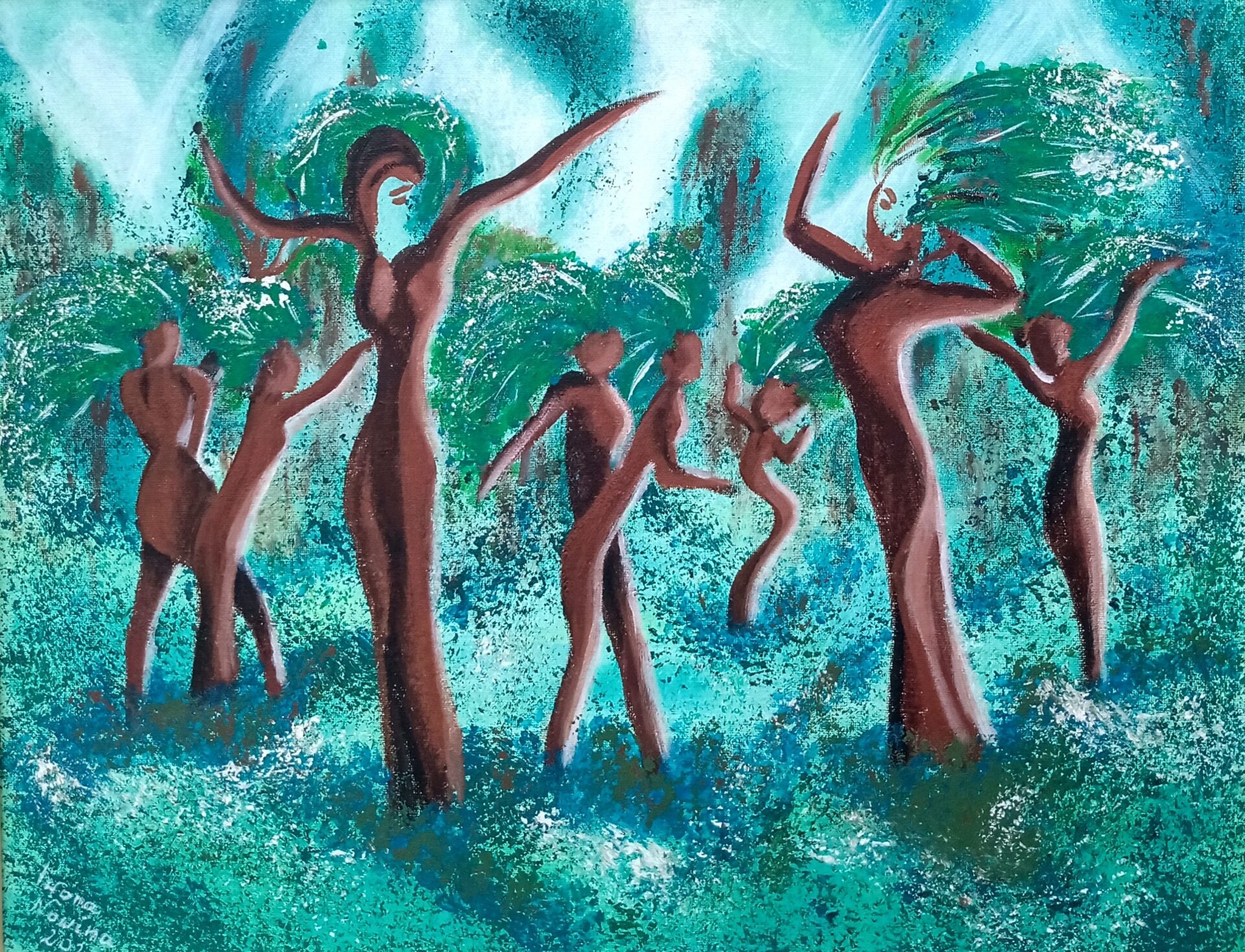 Obraz zainspirowany moją miłością do natury. Kocham lasy, wiem, że drzewa nie tylko żyją, ale też czują. Jest to jeden z wcześniejszych, ulubionych moich obrazów. Boki są zamalowane w kolorze tła, jest też zamontowana zawieszka.
