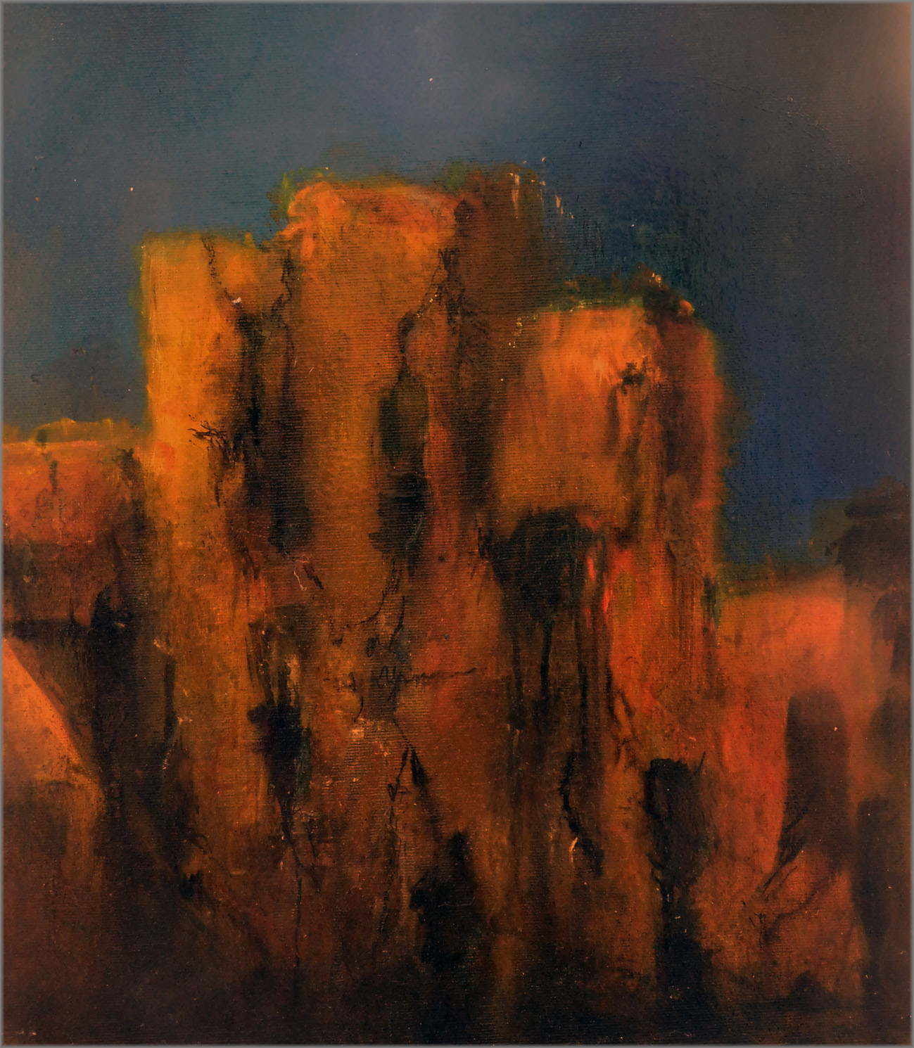 ruiny zawsze kojarzą się z tajemnicą, są obce i zmuszają do refleksji. Obraz próbuje zrekonstruować ten nastrój, ale jest też próbą brutalnej, dysonansowej kompozycji.