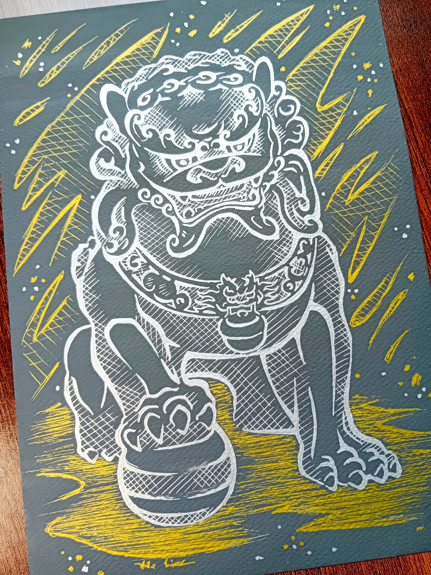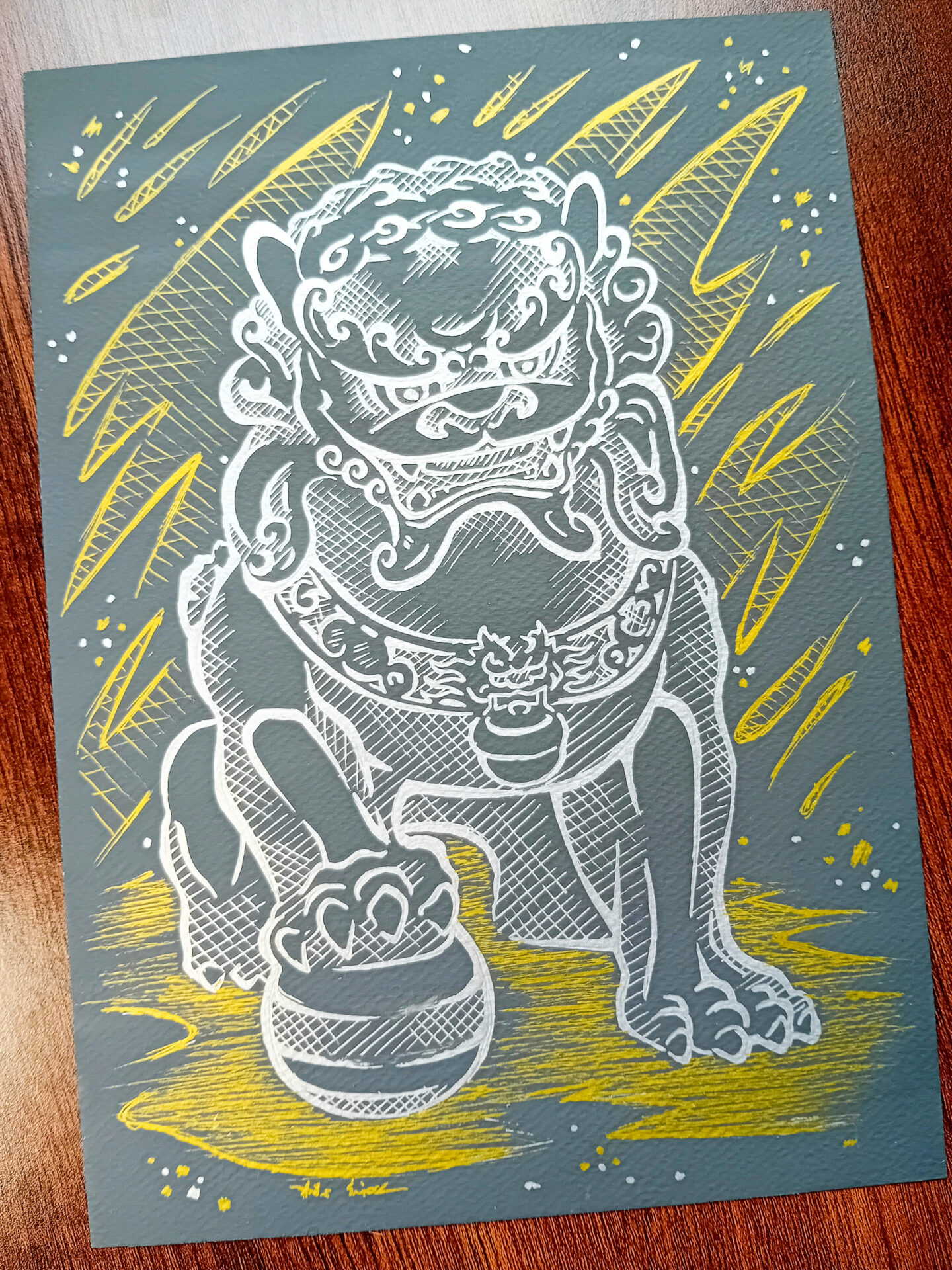 Rysunek został wykonany odblaskowymi długopisami, w opracowanej przeze mnie technice złoto srebrnego lineartu na czarnym, zapewniam że na żywo robi jeszcze większe wrażenie, wzory odbijają się i zmieniają swoją intensywność pod wpływem światła, czego nie można oddać na zdjęciu. Taki obraz może być dobrym pomysłem na prezent.
