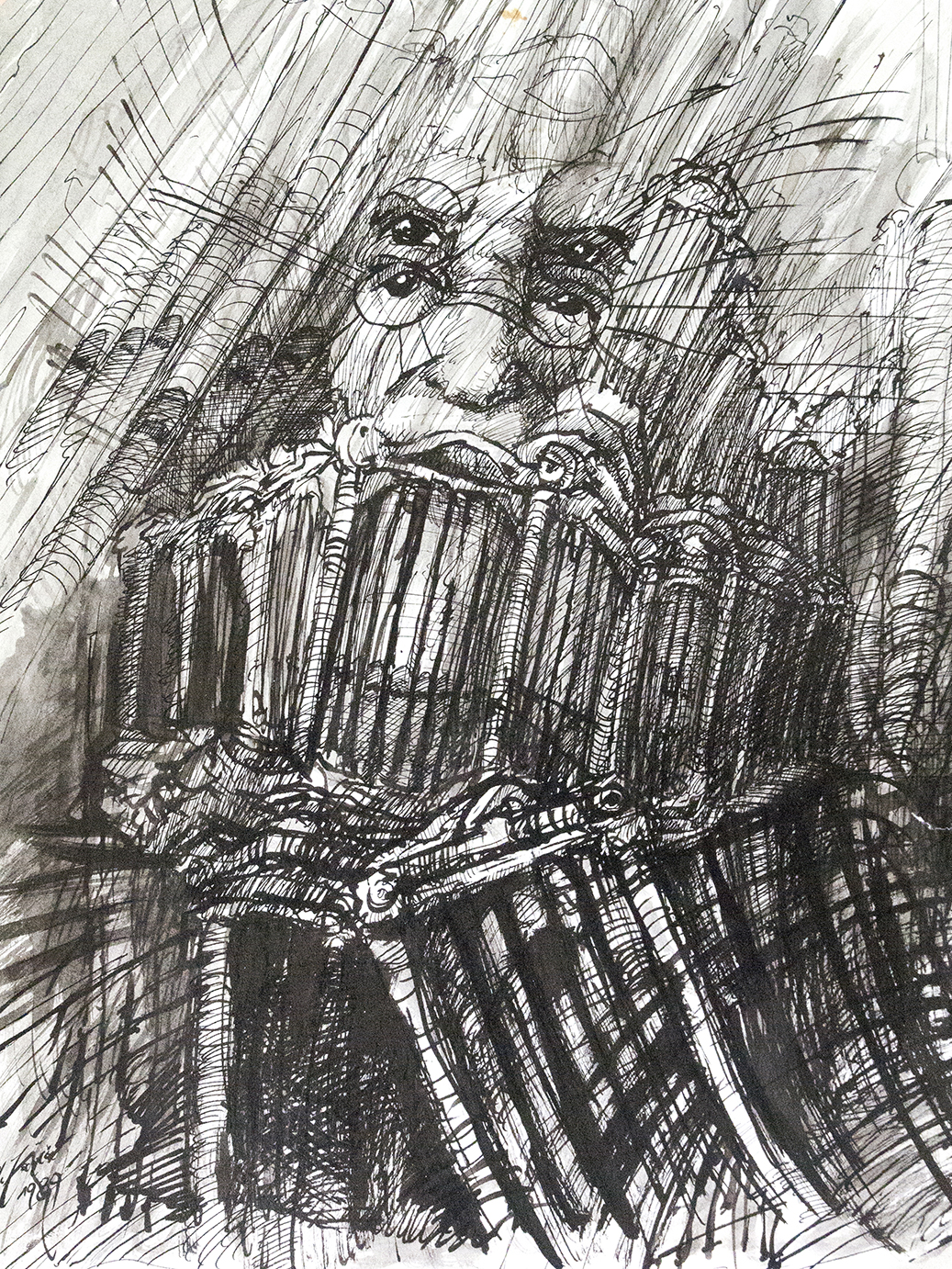 Praca w tuszu rysunek z 1989r na papierze talensa nie oprawiona.Praca brała udział w wystawie indywidualnej w 1990r w Bibliotece Raczyńskich w Poznaniu.Cena dotyczy reprodukcji na papierze fotograficznym 30 x 20 cm .Każda praca jest sygnowana z tyłu.