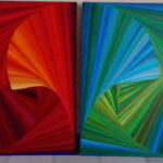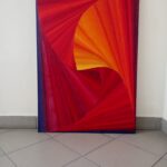 Rozmiar 70×100 cm. Obraz wykonany w techniką olejną na podobraziu bawełnianym. Zawerniksowany. Boki zamalowane na czarno. Sposób ekspozycji jest sugestią twórcy jednak kompozycja pozwala na ekspozycję zarówno horyzontalną jak i wertykalną. Abstrakcja w przewadze kolorów ciepłych, malowany techniką umożliwiającą tworzenie dodatkowej struktury. Rytm kompozycji jest wciągający i energetyczny. Obraz powstał w 2019 i stanowi część dyptyku. Samodzielnie prezentuje się równie atrakcyjnie, dlatego sprzedaję obrazy pojedynczo.
