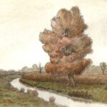 Rysunek przedstawia niewielką rzekę meandrującą wśród jesiennego pola. Praca wykonana w akwareli i ołówku, inspirowana jest sztuką ilustratorską przełomu XIX i XX wieku.