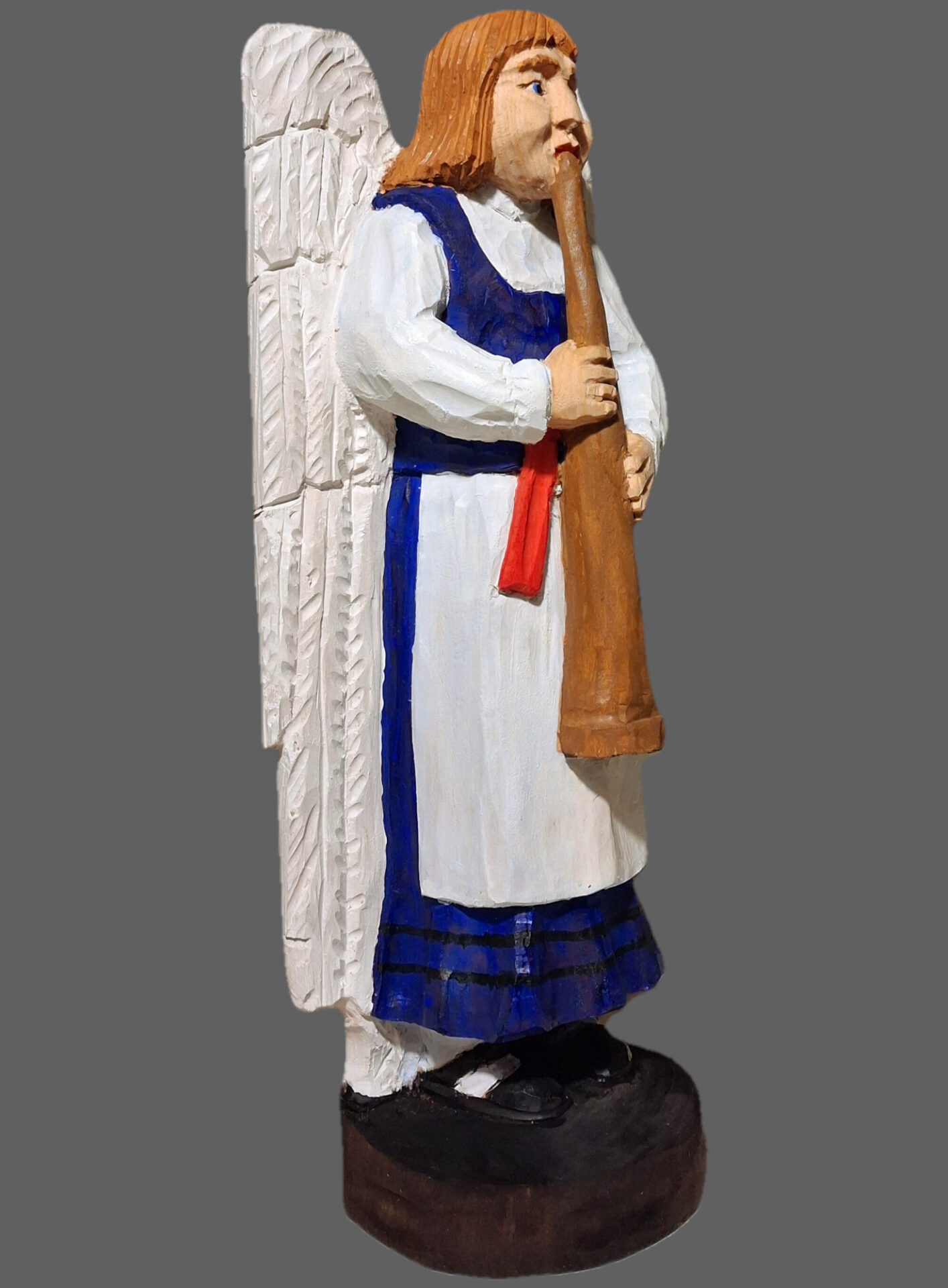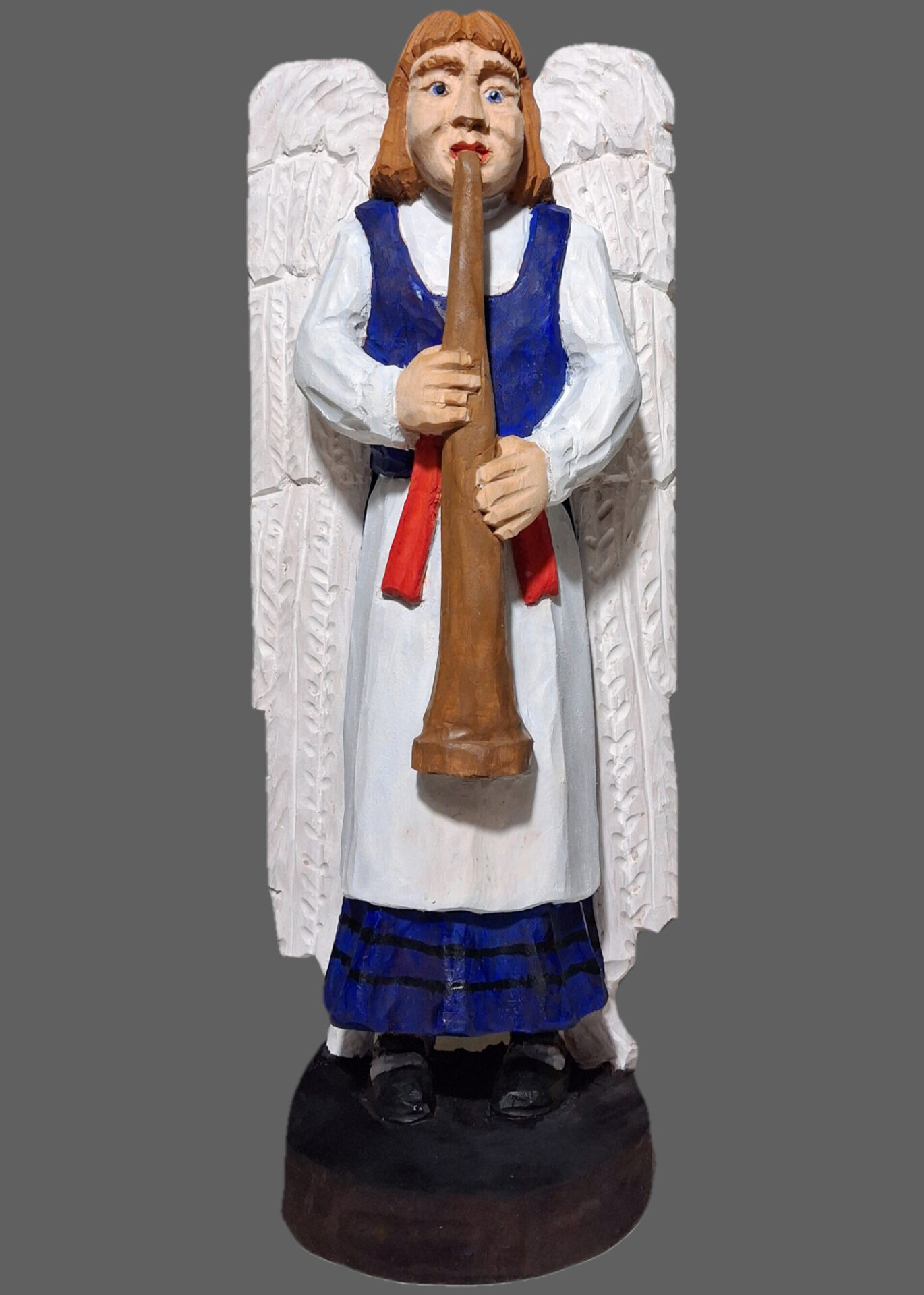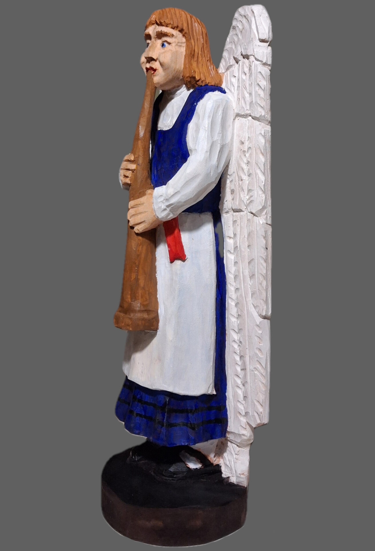 Rzeźba wykonana przez twórcę ludowego z pomorza członka STL. Praca pomalowana temperą i zakonserwowana werniksem.
