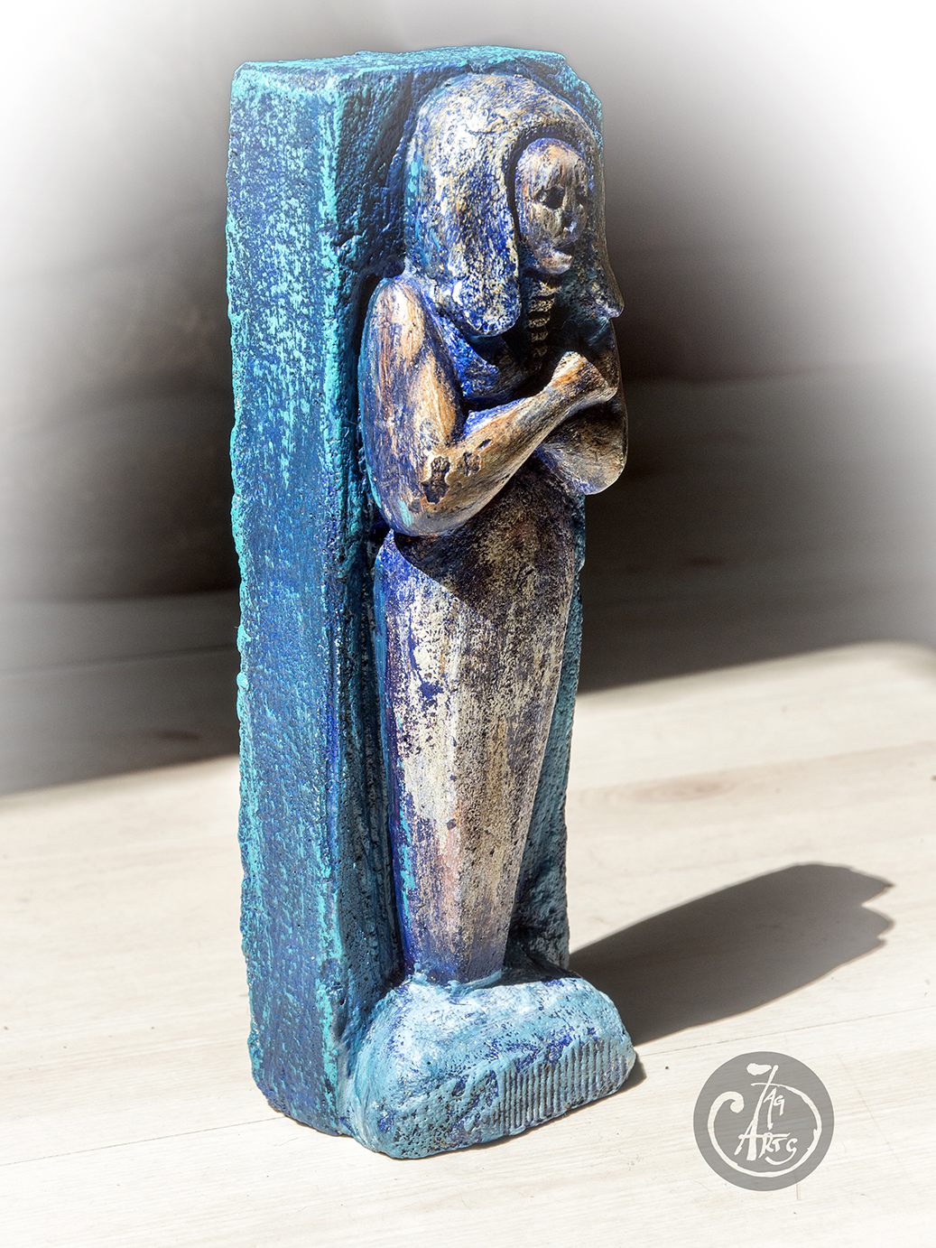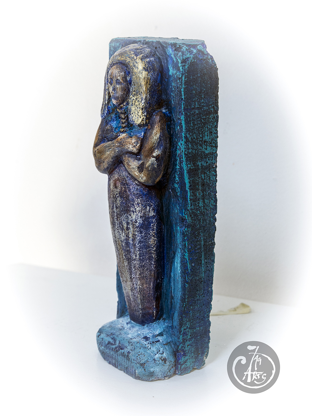 Praca autorska wykonana w siporeksie 2004r po współczesnej metamorfozie barwnej zabezpieczonej lakierem akrylowym wymiary: 24 cm x 8,5 cm.Praca pomalowana farbą akrylową Renesans.