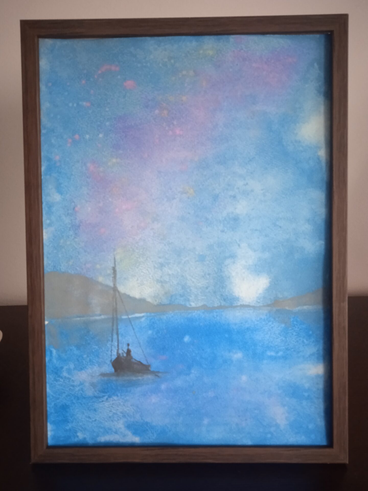 Obraz akwarelowy w brązowej ramce format A4 wykonany przeze mnie w październiku tego roku