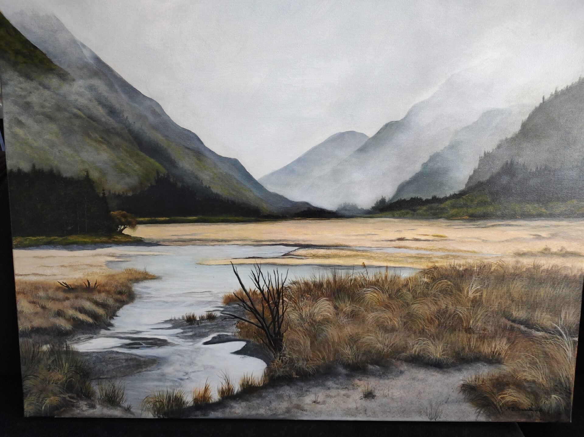 Obraz mojego autorstwa namalowany profesjonalnymi farbami akrylowymi na podobraziu malarskim pokrytym grubym włoskim płótnem naciągniętym na krosno. Wymiary 70 x 90 cm. Pokryty werniksem z połyskiem, sygnowany na awersie i rewersie. Boki obrazu zamalowane zgodnie z kolorystyką całości.