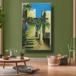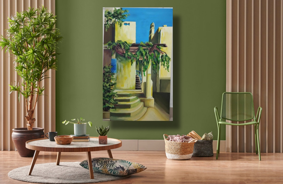 Boki obrazu są zamalowane i nie wymaga on ramy.