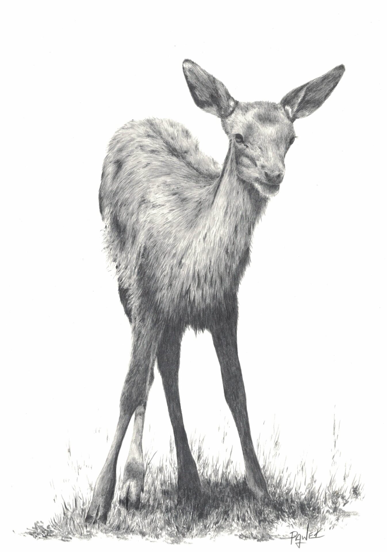 rysunek wykonany ołówkiem w formacie A4 przedstawiający sarnę – zapraszam do zakupu
