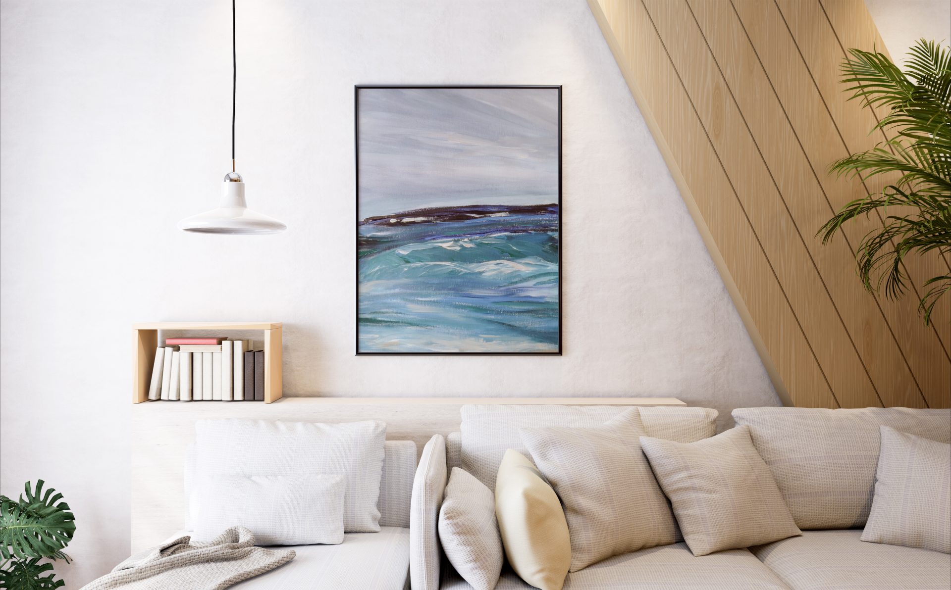 pół abstrakcyjny krajobraz morski inspirowany moimi wspomnieniami z moich wakacji nad Bałtykiem w lipcu 2022