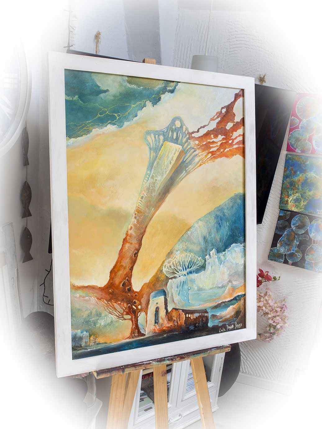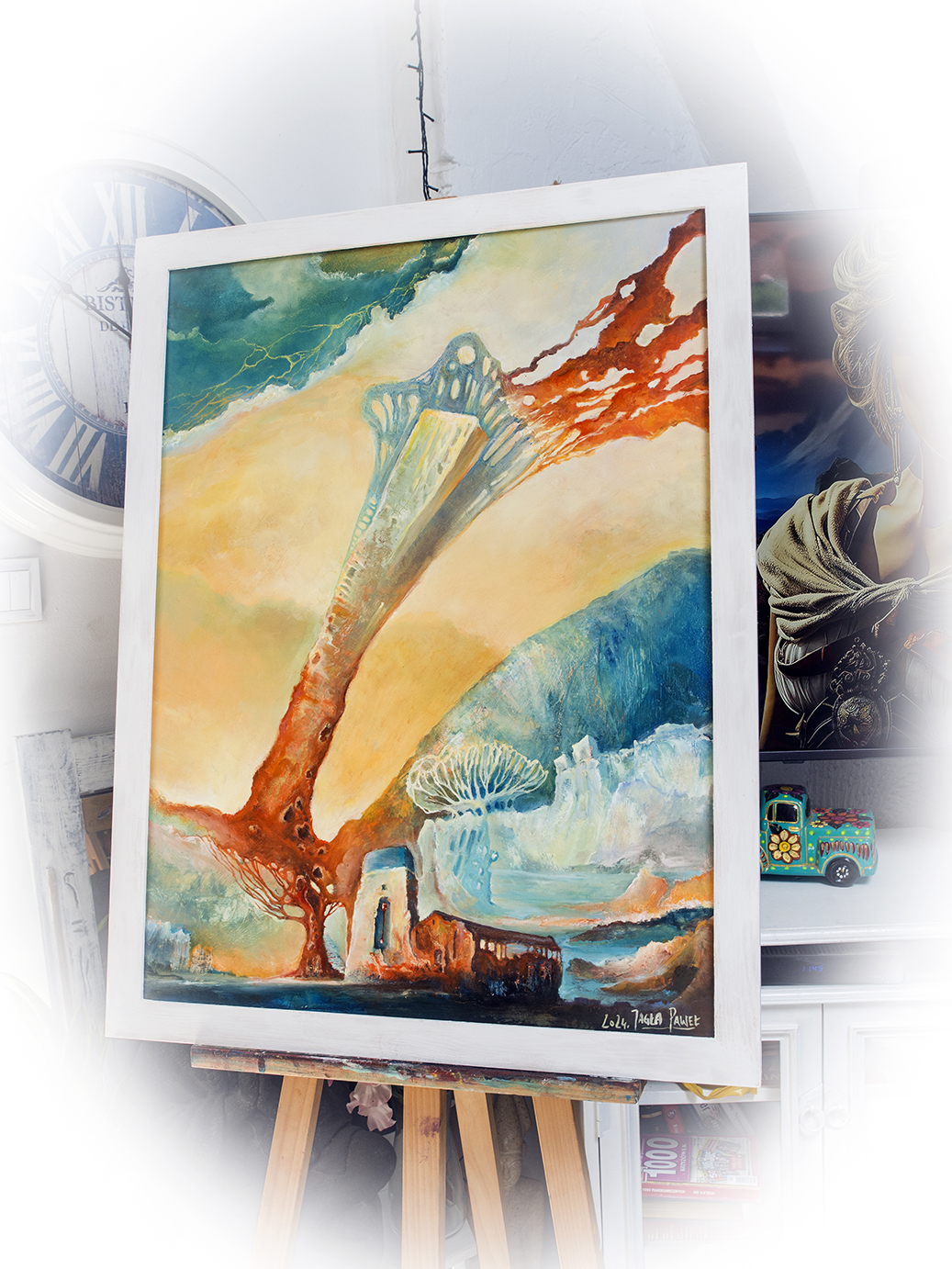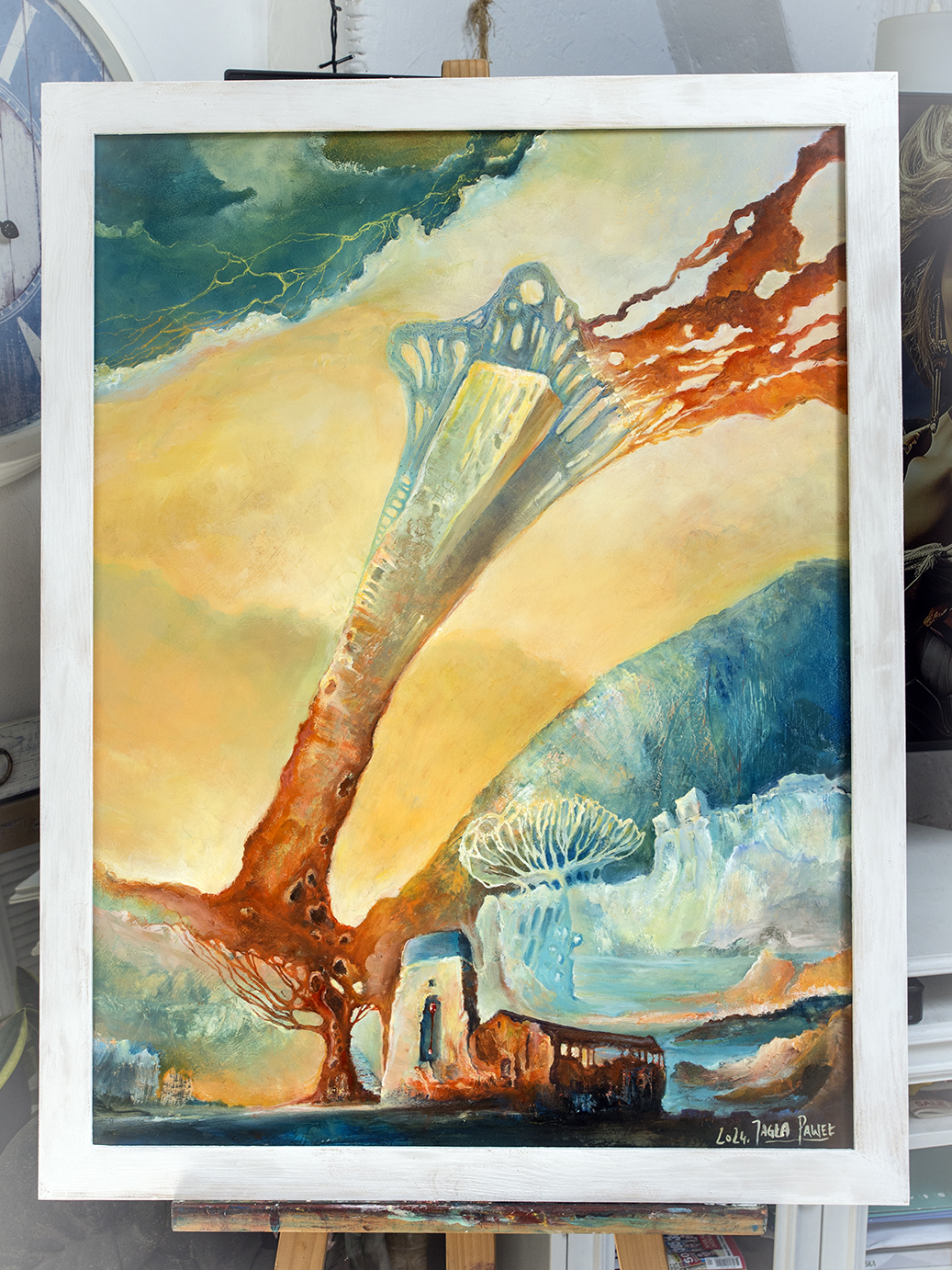 Obraz olejny autorski 80 x 60 w ramie drewnianej 85,5 x 65,5.Namalowany na płycie mdf 9mm.Farby olejne Talens Van Gogh Certyfikat autentyczności