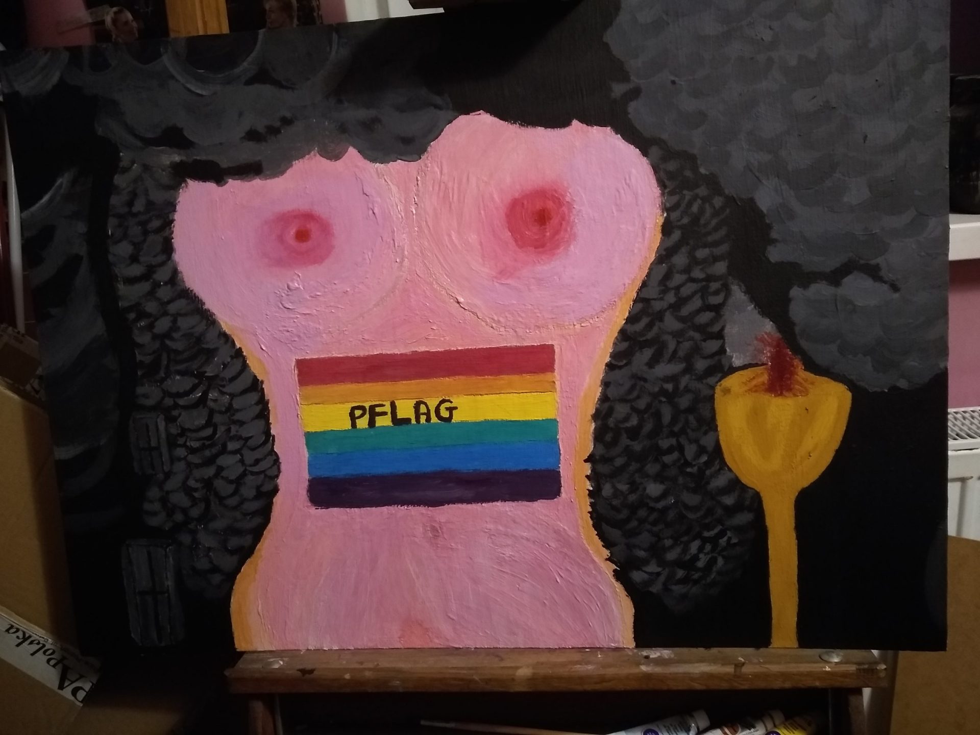Jest obraz malowany temperami. W stylu Red Art z motywem gotyckim i dark fantasy , a także motywem społecznym . Obraz malowany na zagruntowanym podobraziu 70 x50