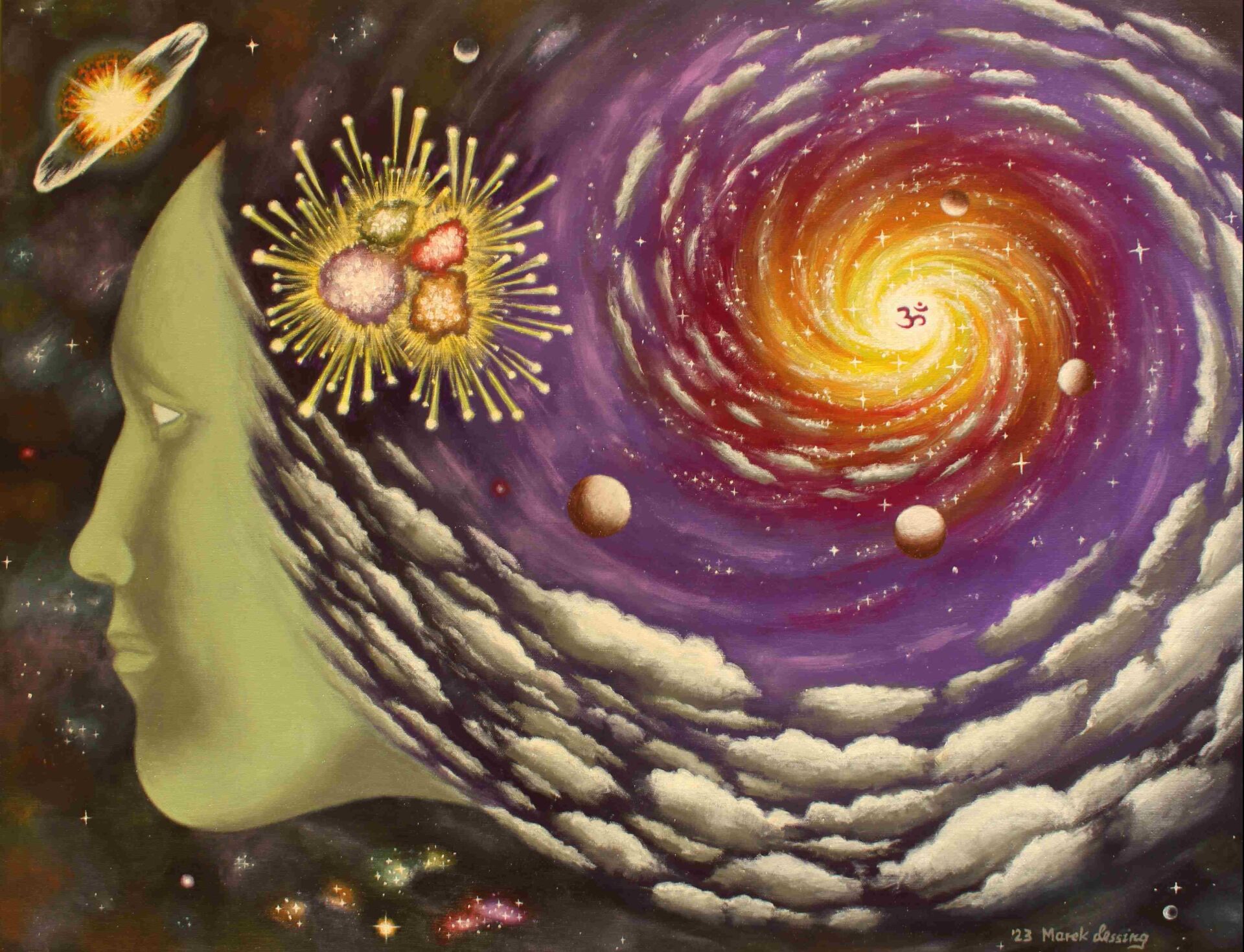 ,, Sen o wyjściu z Samsary” 90/70cm akryl na płótnie Malarstwo-Surrealizm mistyczny;mareklessing.pl