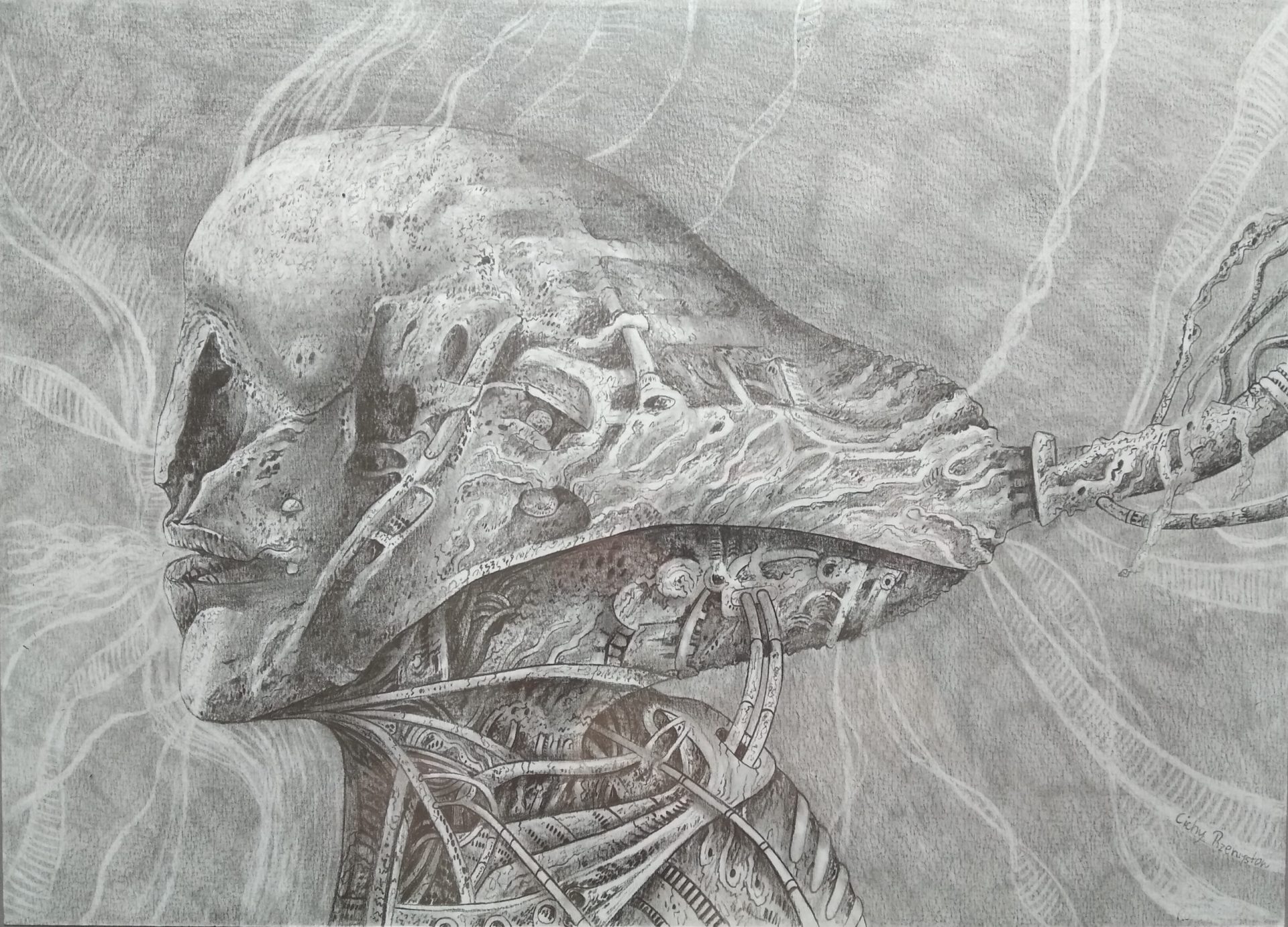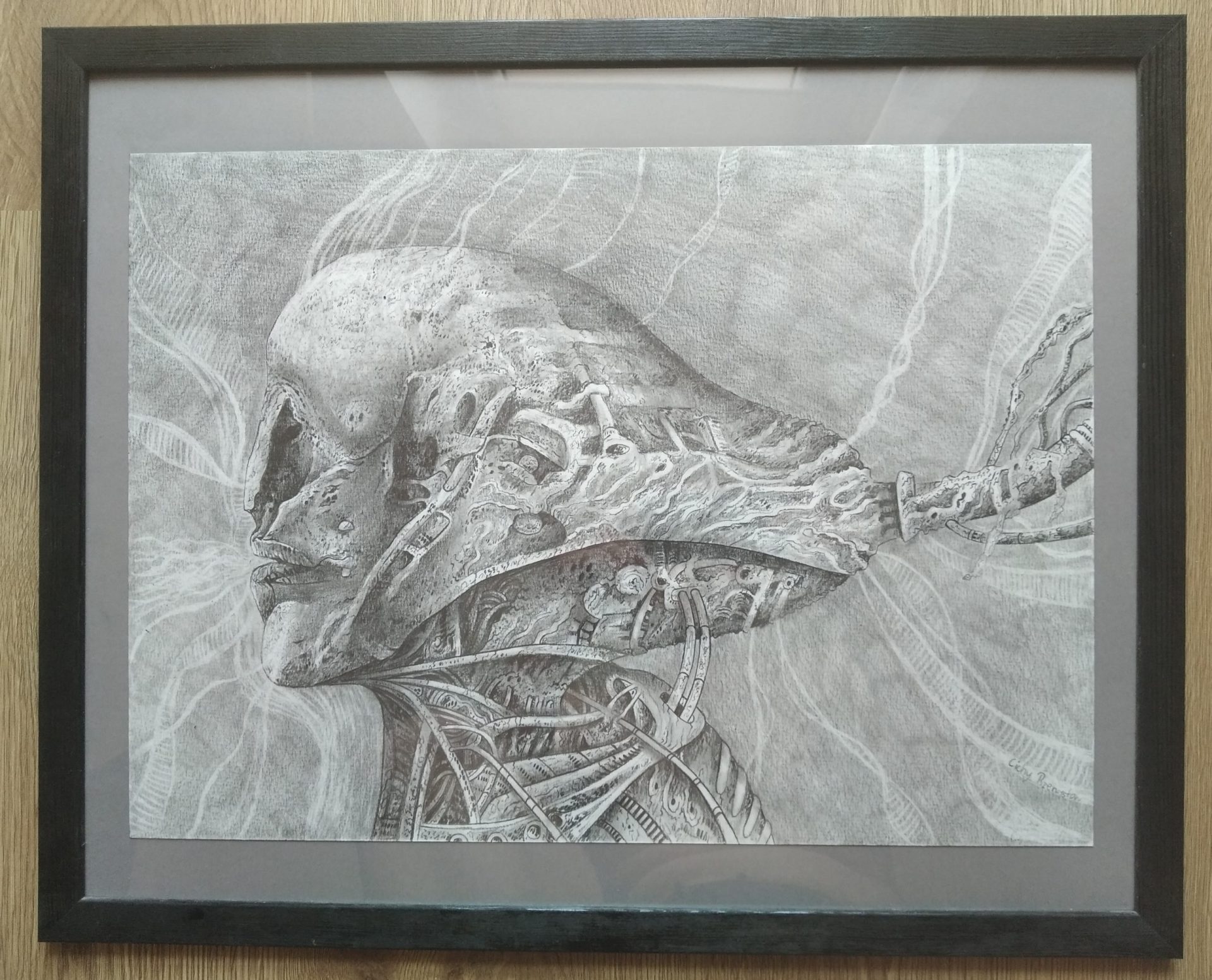 Rysunek narysowany ołówkiem na papierze. Oprawiony w ramie. Wymiary ramy 53x43cm . Wymiary samego rysunku to 45x32cm.