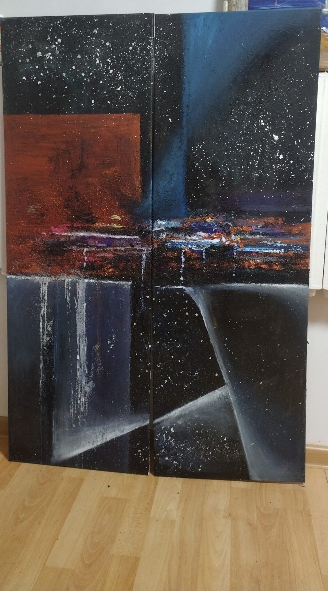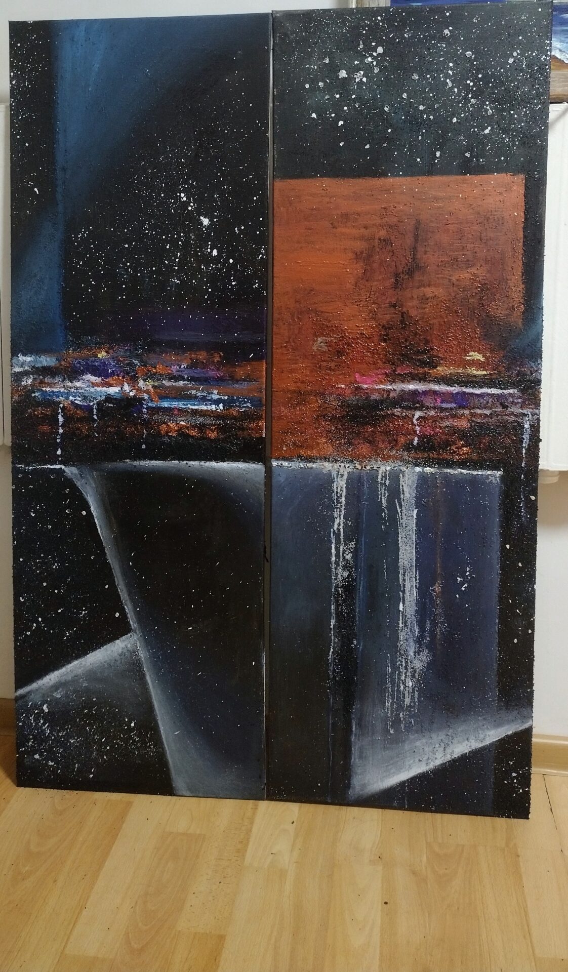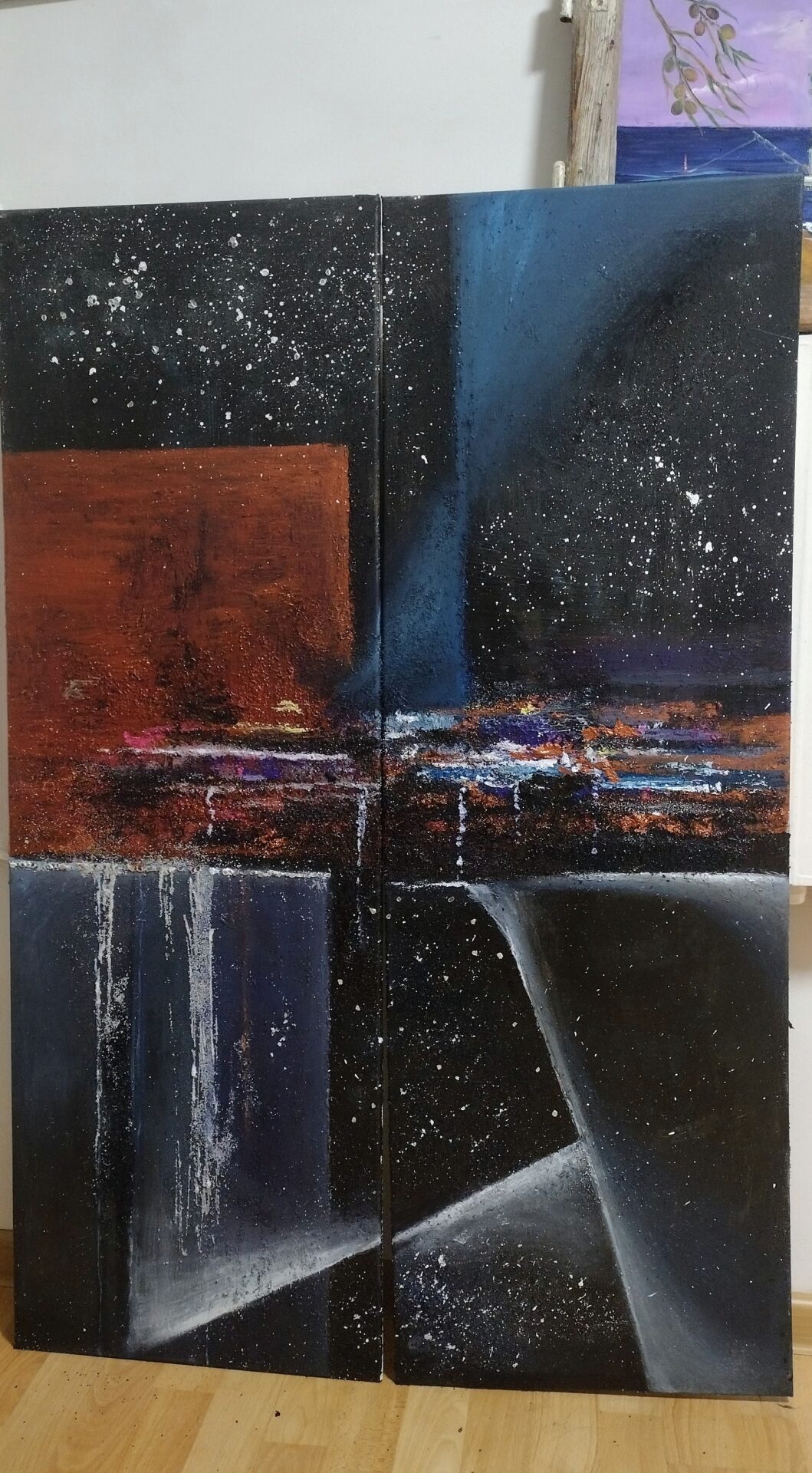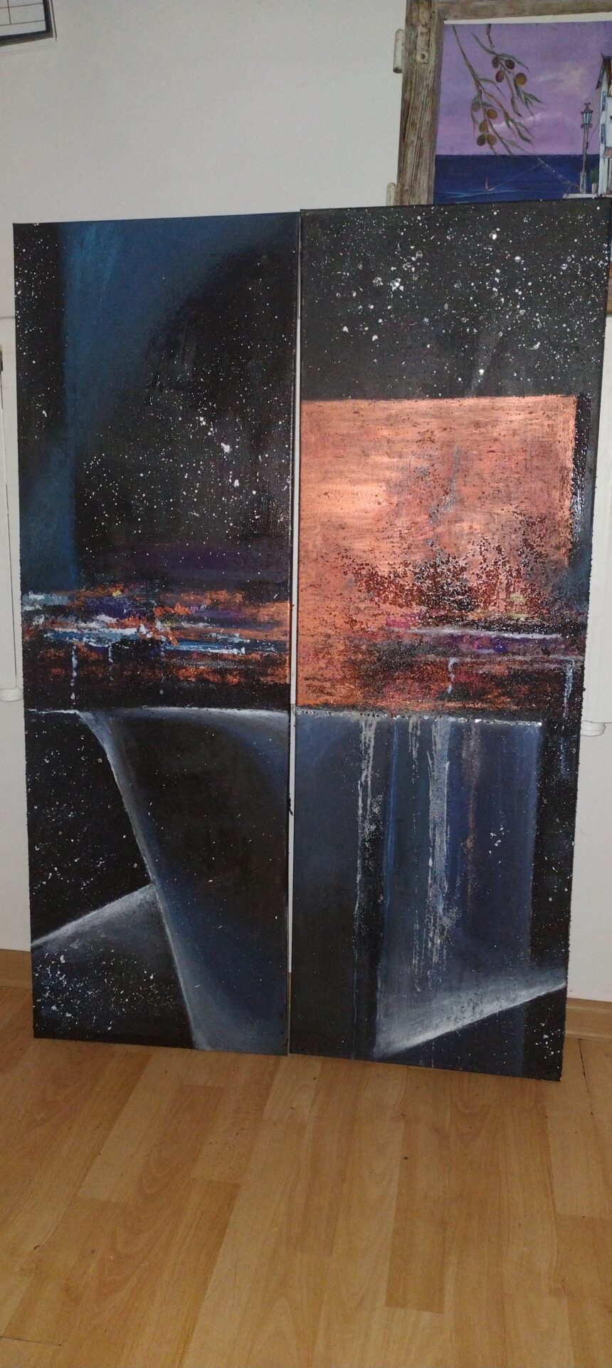 Obraz abstrakcyjny wykonany w technice olejnej na podobraziu płóciennym x2