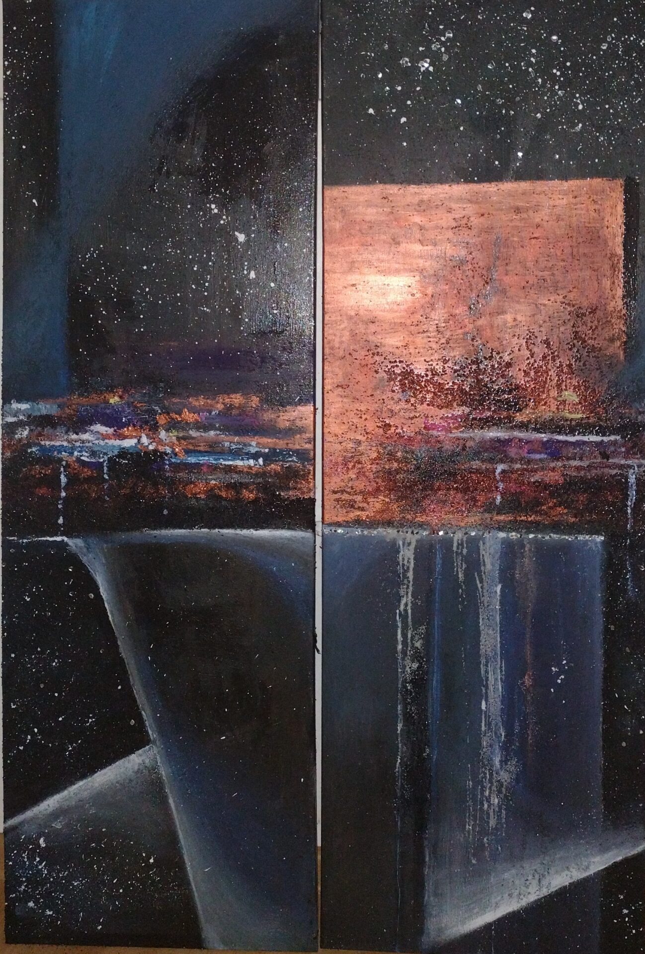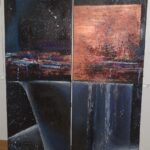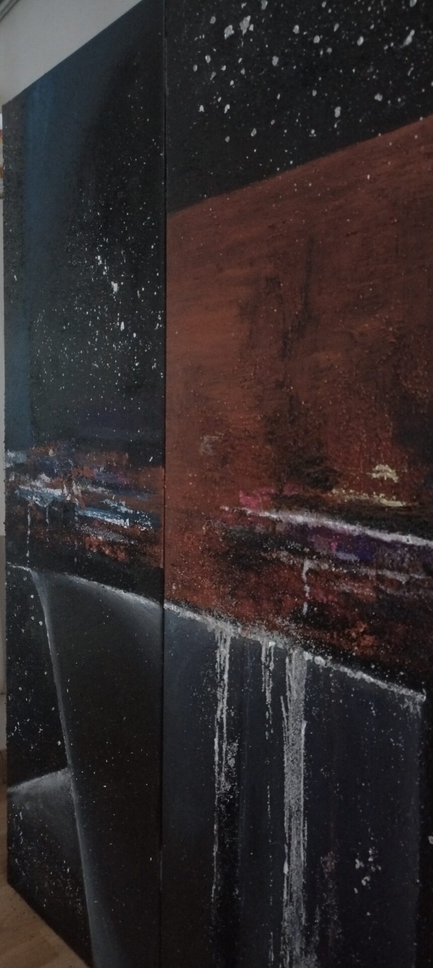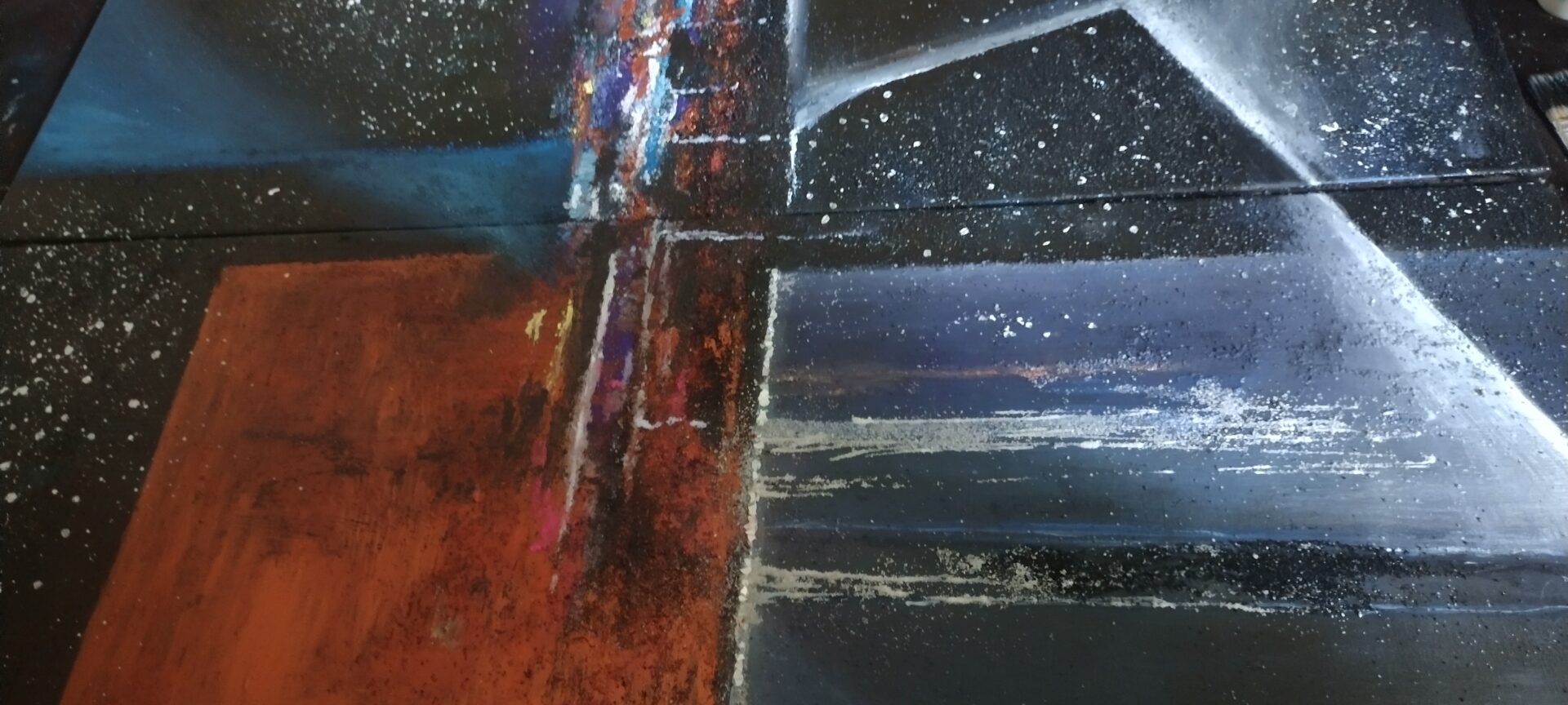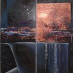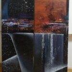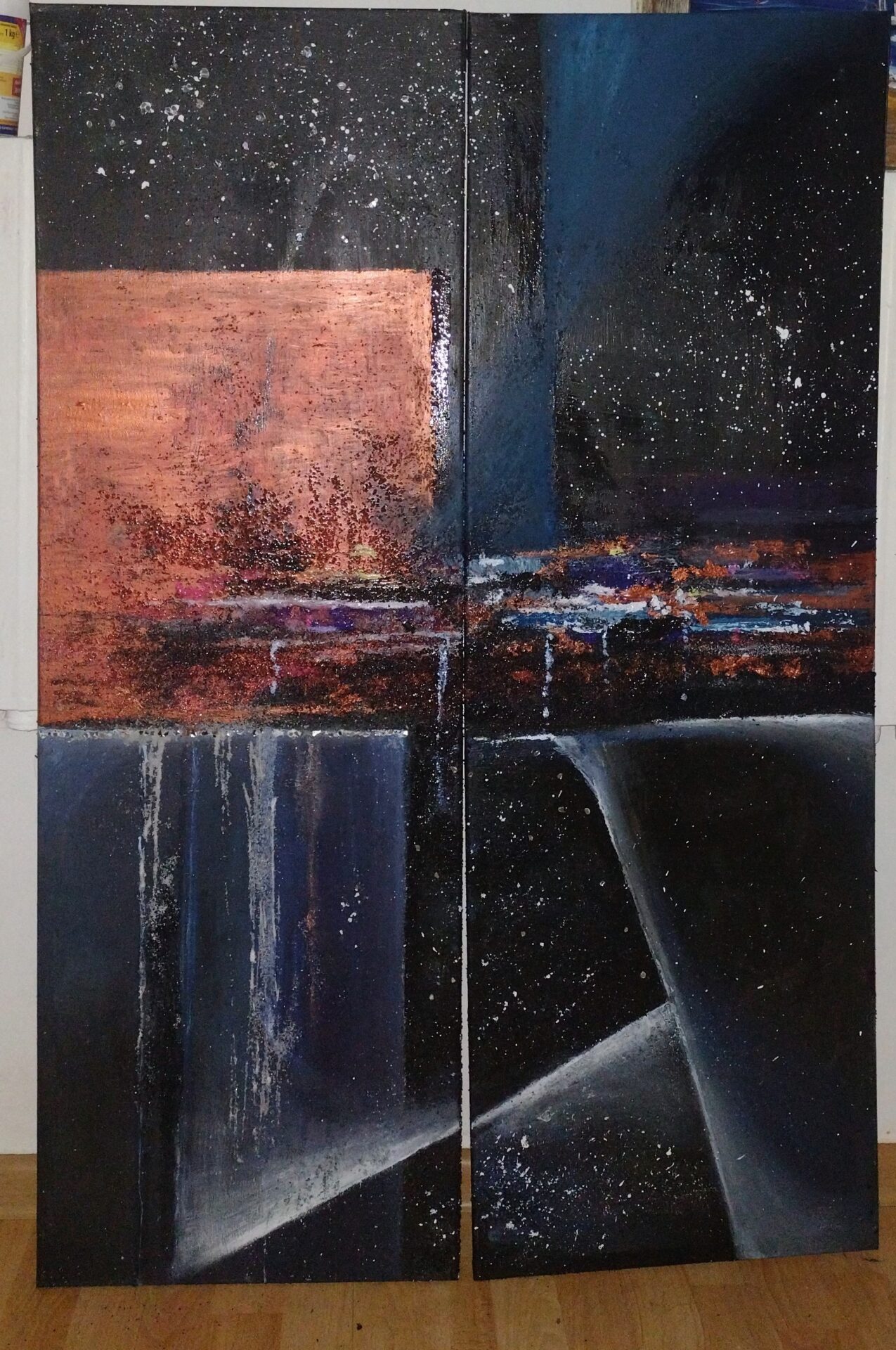 Obraz abstrakcyjny wykonany w technice olejnej na podobraziu płóciennym x2