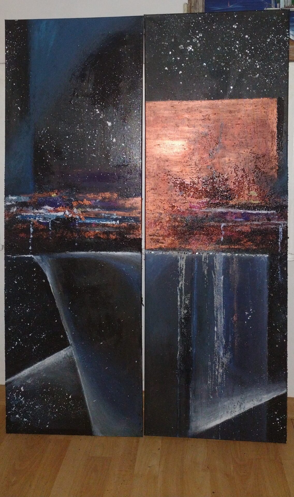 Do stworzenia tego obrazu użyłam kruszca krzemienia (naruralny ,nie syntetyk) oraz w miejscu większych gwiazd kruszec szklany,lustrzany.