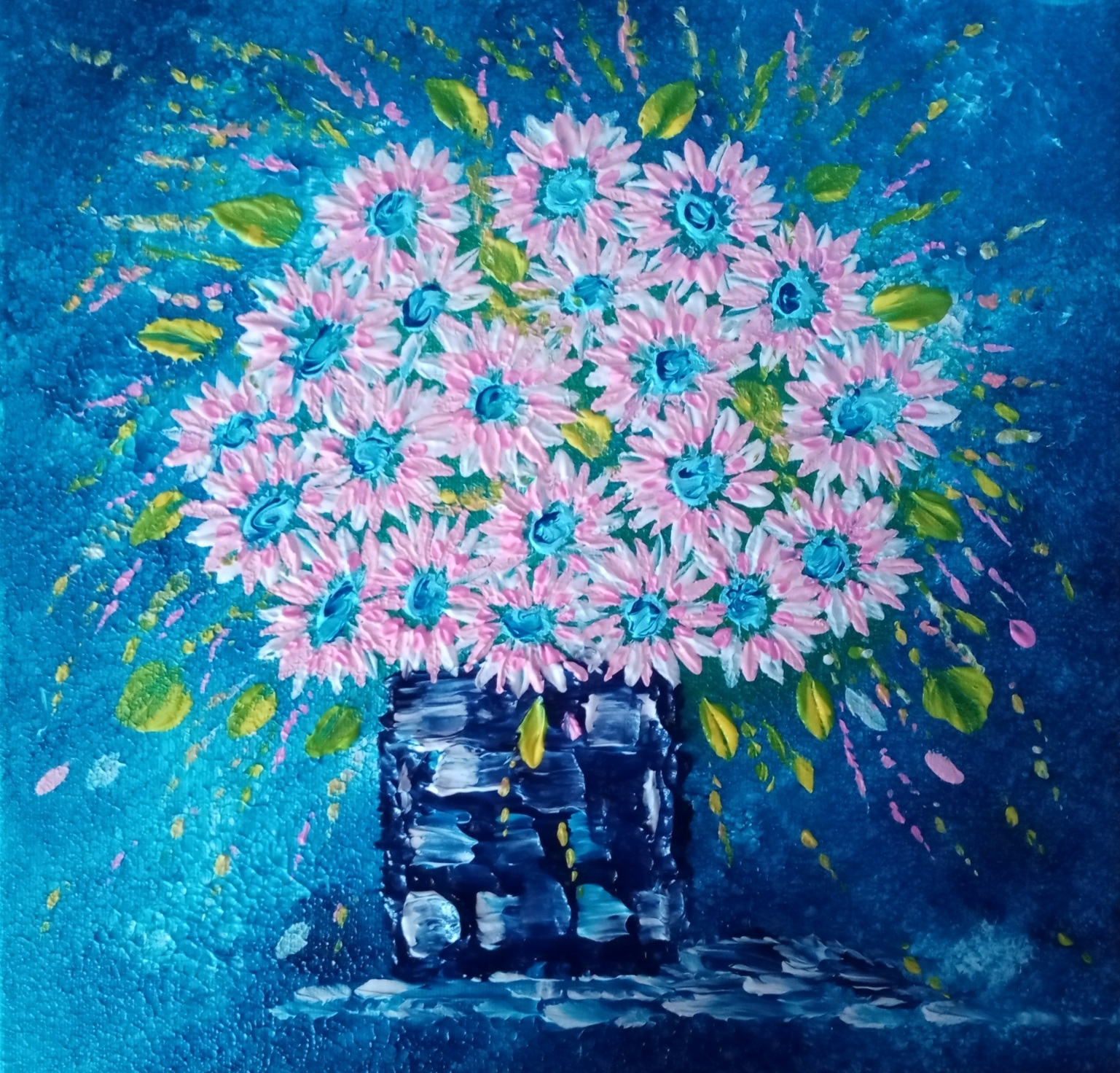 Obraz namalowany na profesjonalnym płótnie malarskim wysokiej jakości farbami akrylowymi.