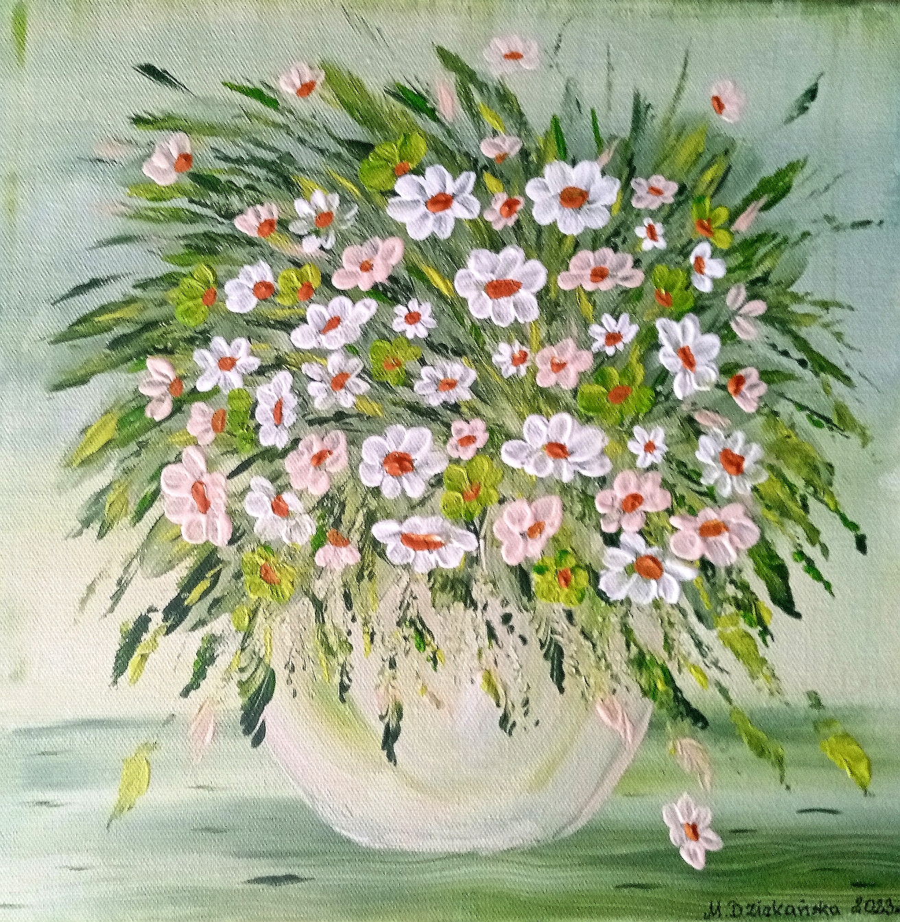 Obraz namalowany na profesjonalnym podobraziu . Płótno nabite na sosnowe krosno. Podobrazie posiada kołki rozporowe. Gramatura płótna 380 gr/m2.Użyte zostały wysokiej jakości farby akrylowe.Wymiary 30 x 30.Do pracy dołączam certyfikat. Jest to moja pracaObraz jest sygnowany i zawerniksowany.Boki zamalowane w tonacji obrazu.